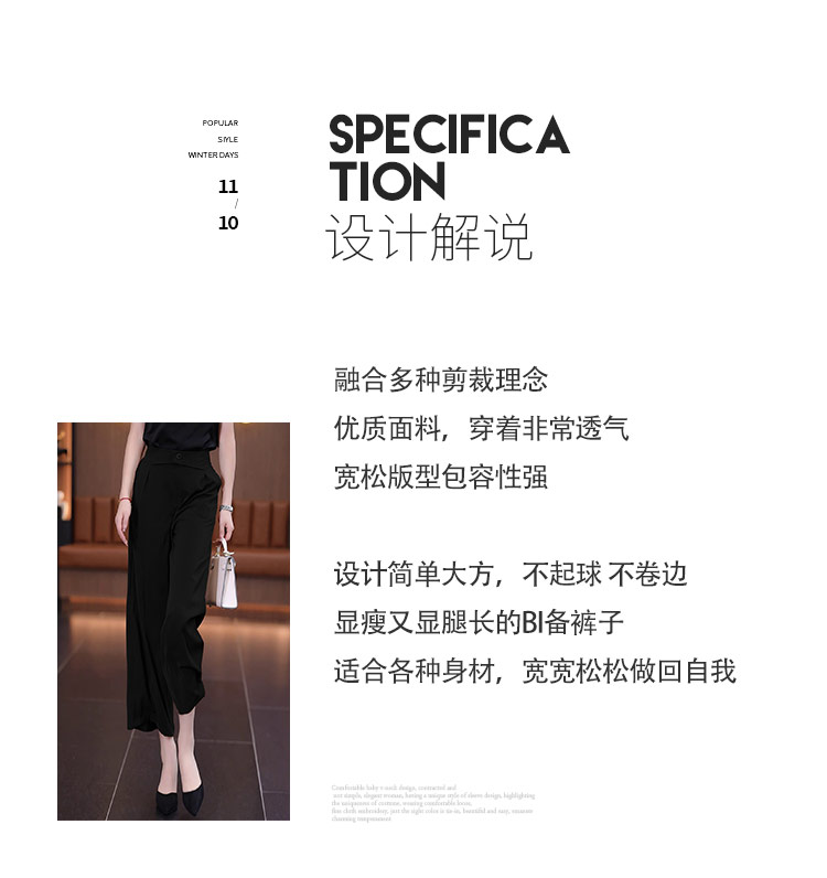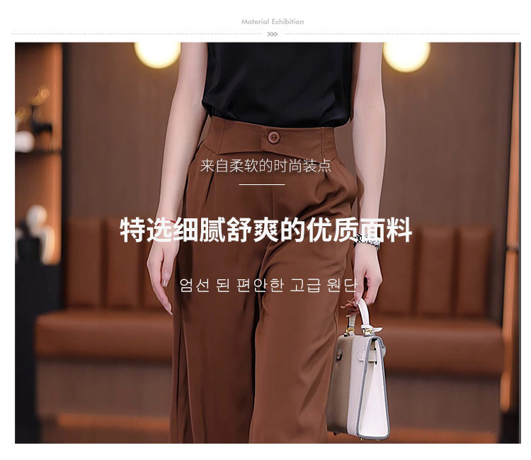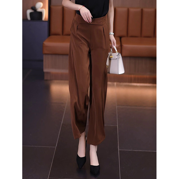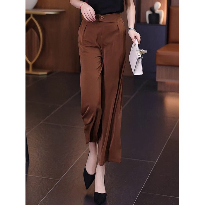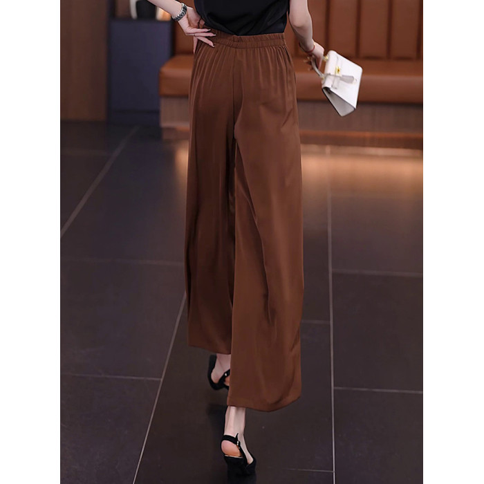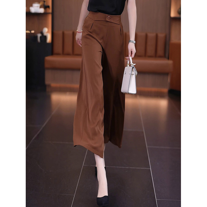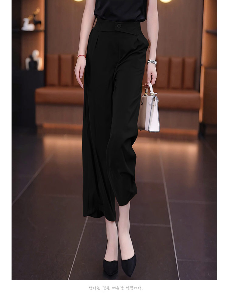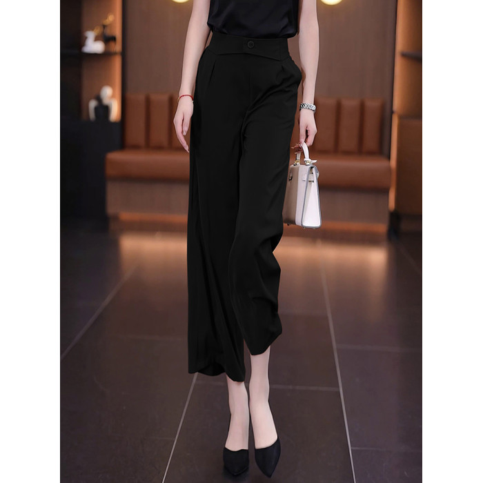 冰絲濶腿褲女夏季薄款裙褲2025直筒八分褲子垂墜感高腰顯瘦休閒褲