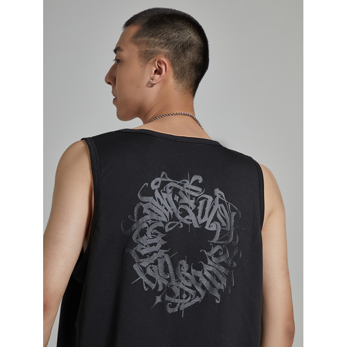 LWA夏季西海岸嘻哈匪幫大碼刺青寬松紋身師奇卡諾花體字球衣背心