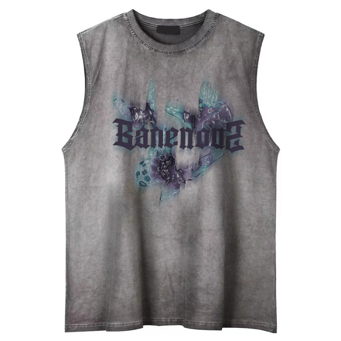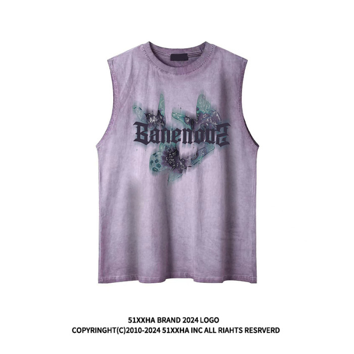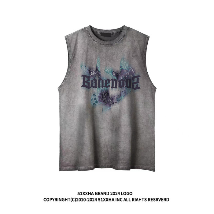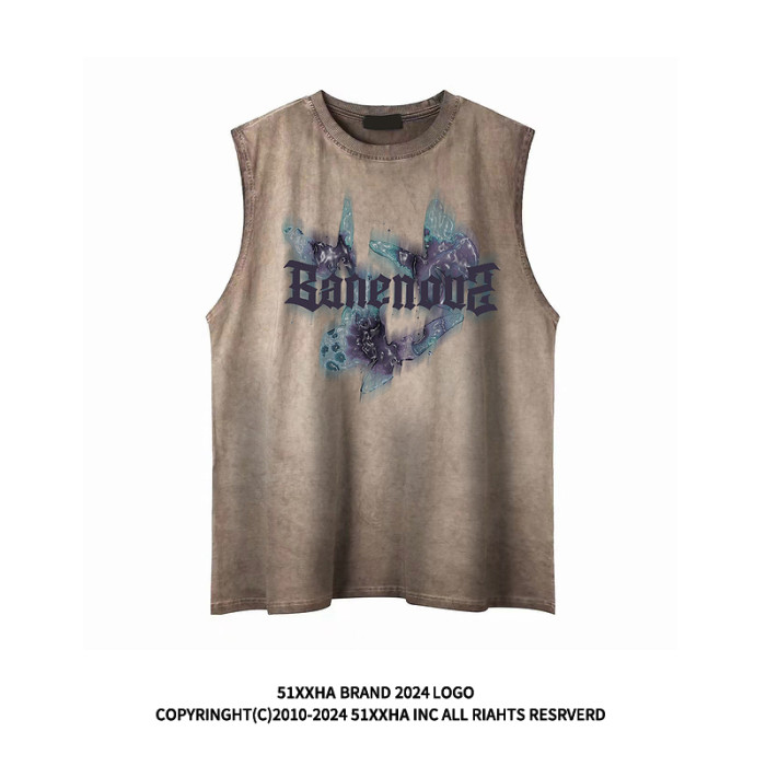 51嘻哈街頭復古vibe做舊健身背心男生坎肩美式設計感寬松無袖T恤