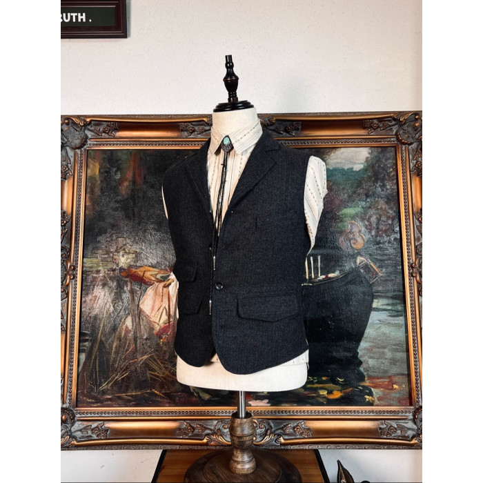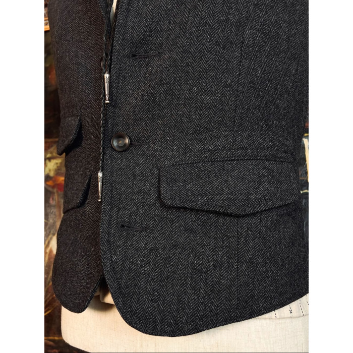 經典人字紋毛呢馬甲復古修身馬夾