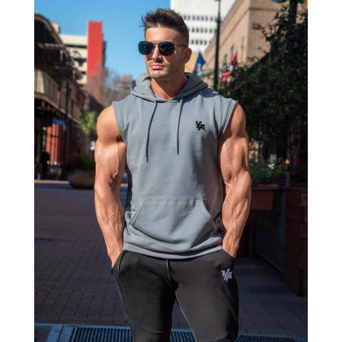 肌肉型男兄弟春夏連帽運動無袖男背心修身健身器械訓練緊身帽衫男