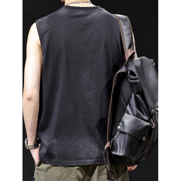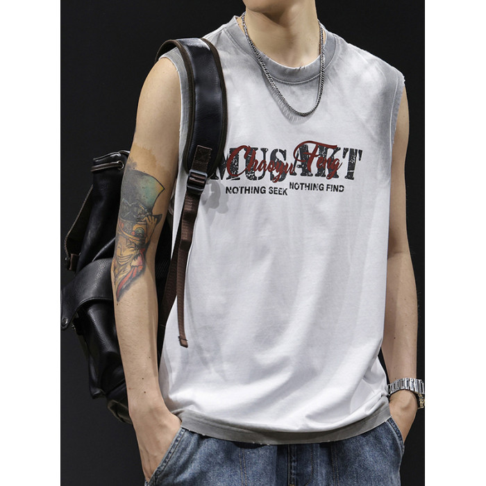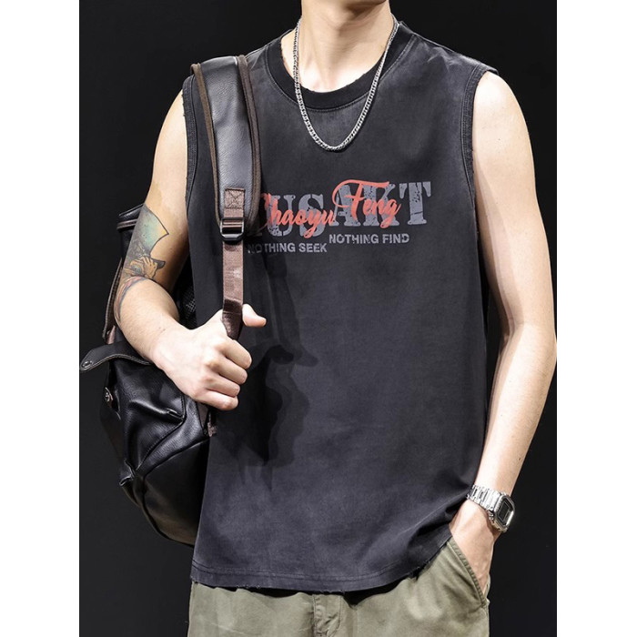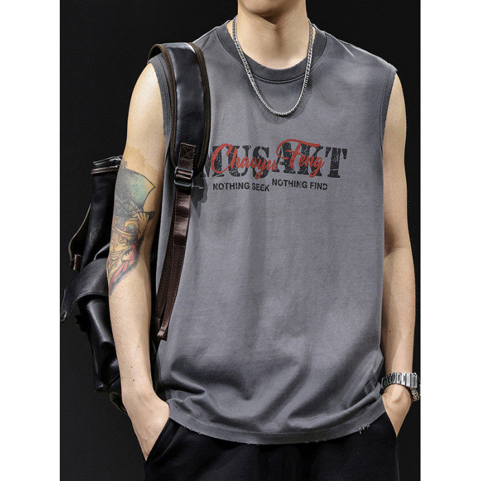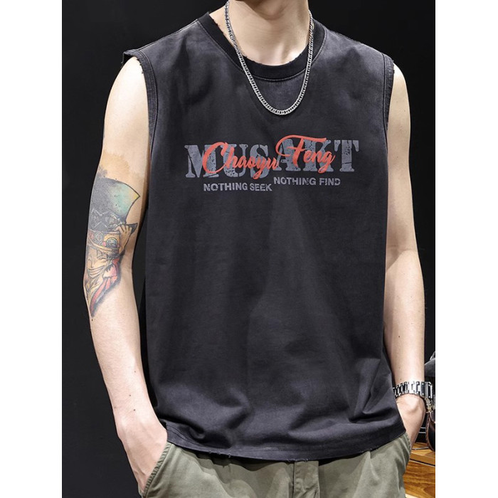倉石一樹字母印花背心夏季男士t恤美式復古坎肩2025新款運動健身