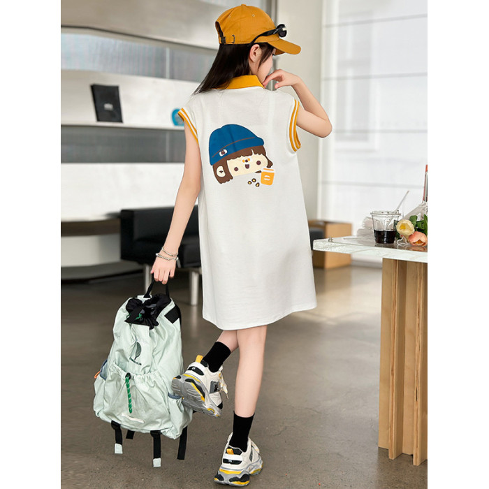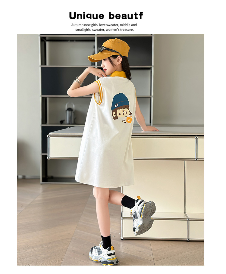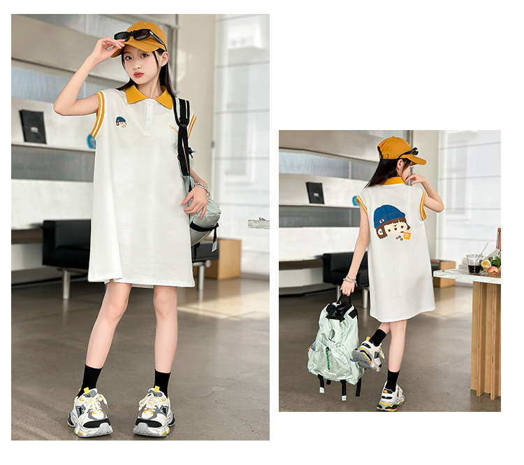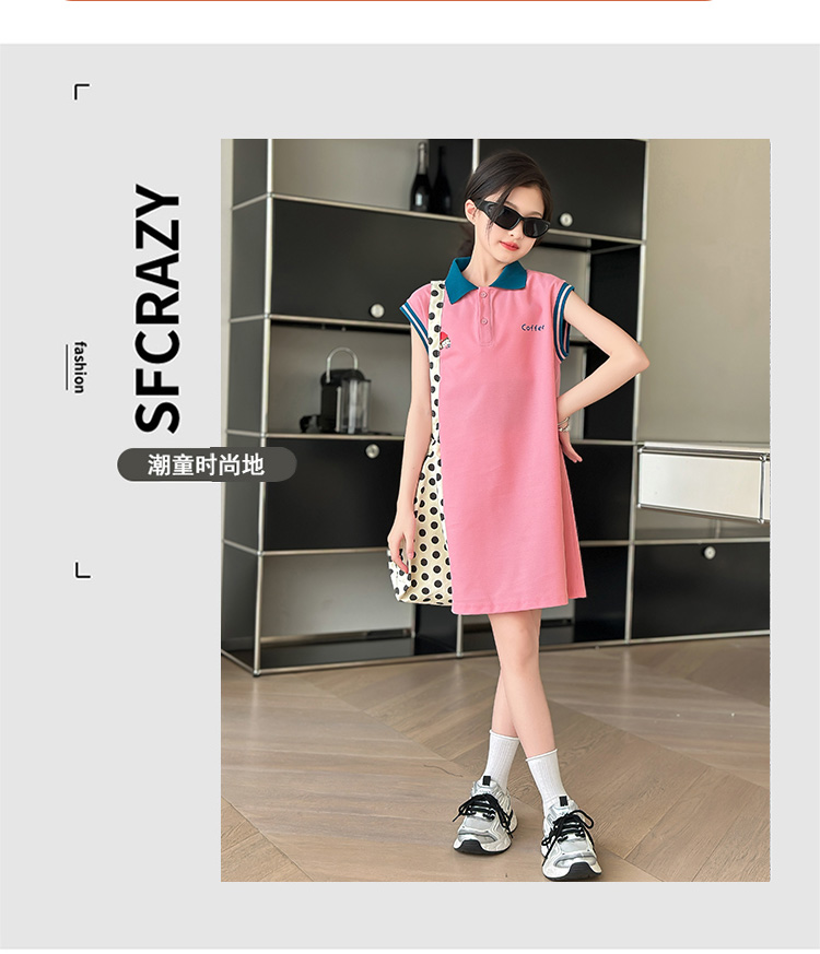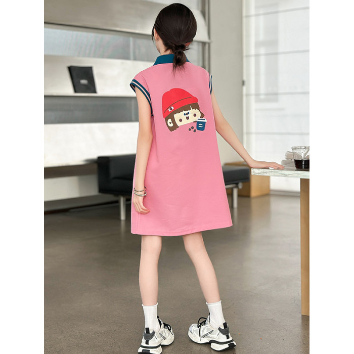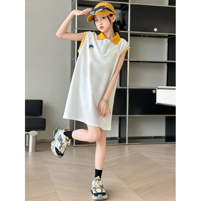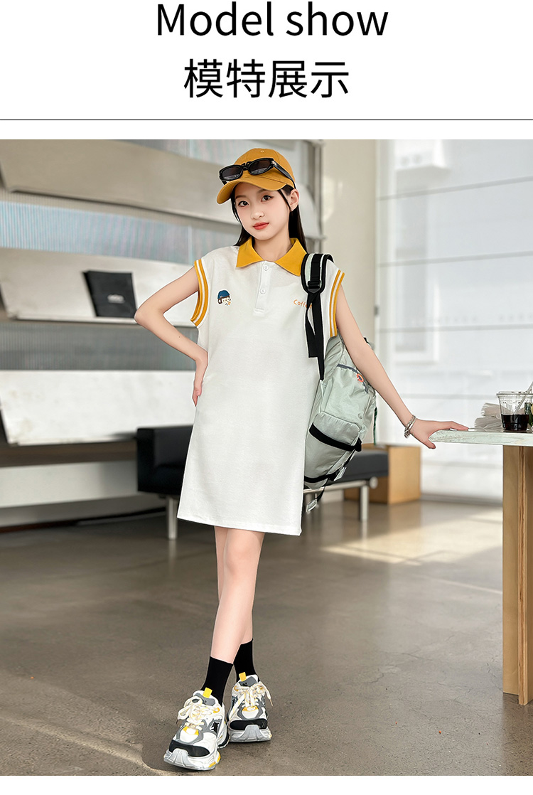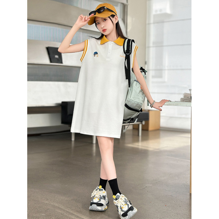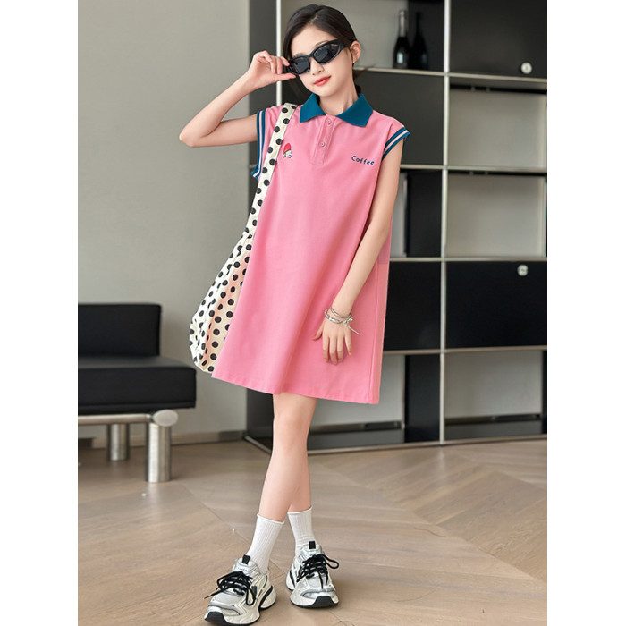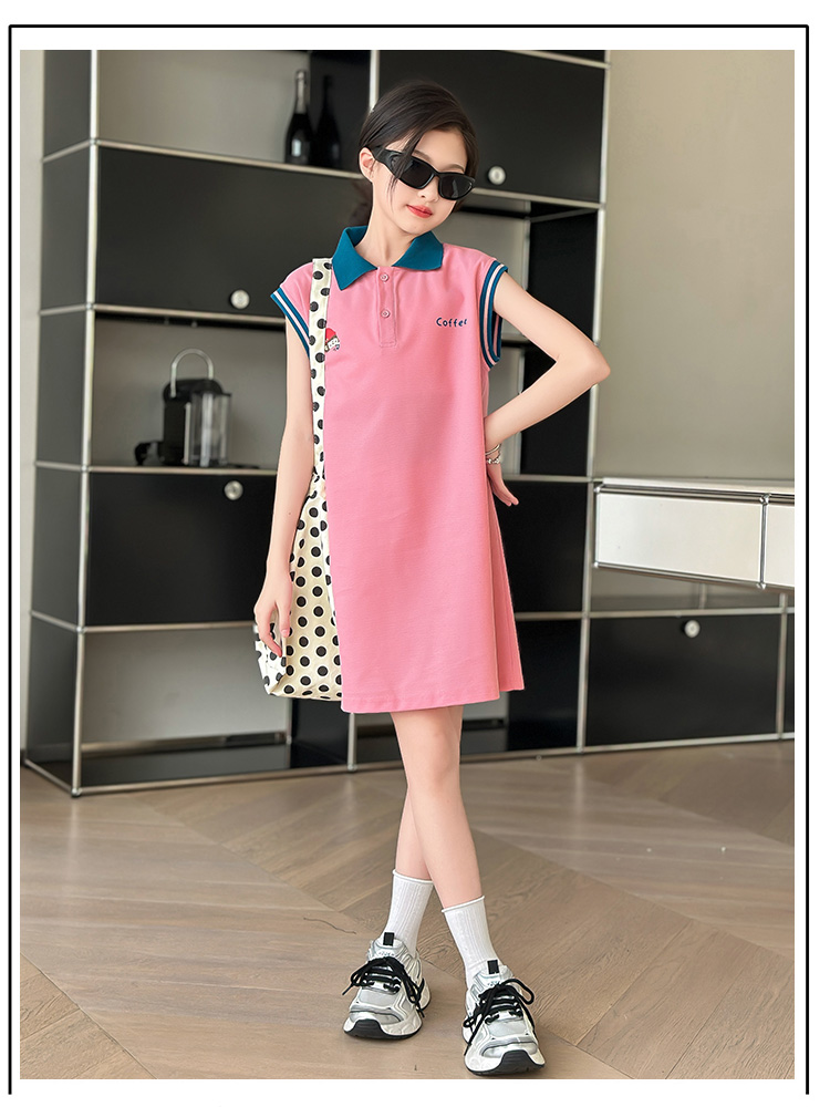REY韓國女童連衣裙夏季2025新款中大童多巴胺POLO無袖裙子夏裝