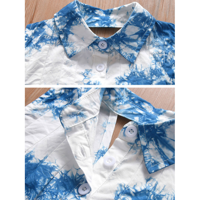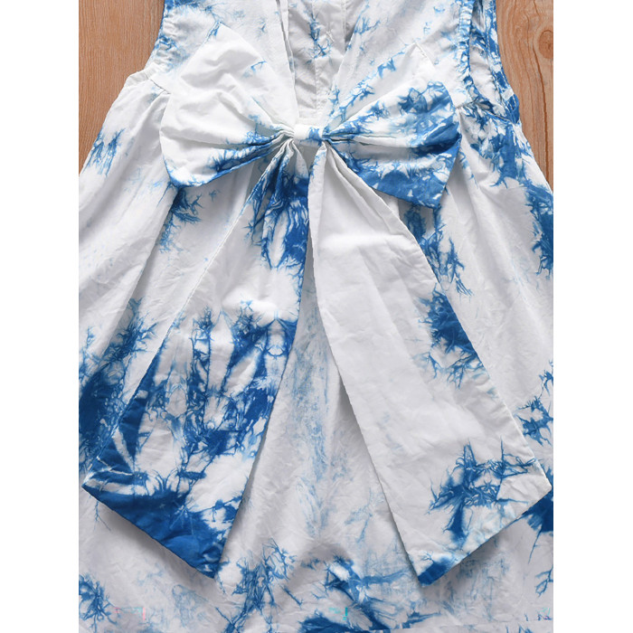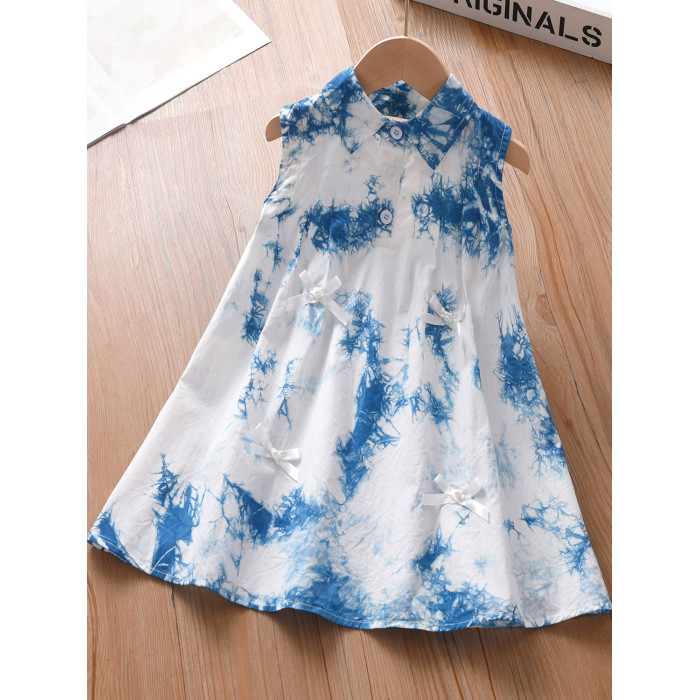 雲南手工植物紥染女童娃娃領公主裙2025夏新款立體蝴蝶結背心