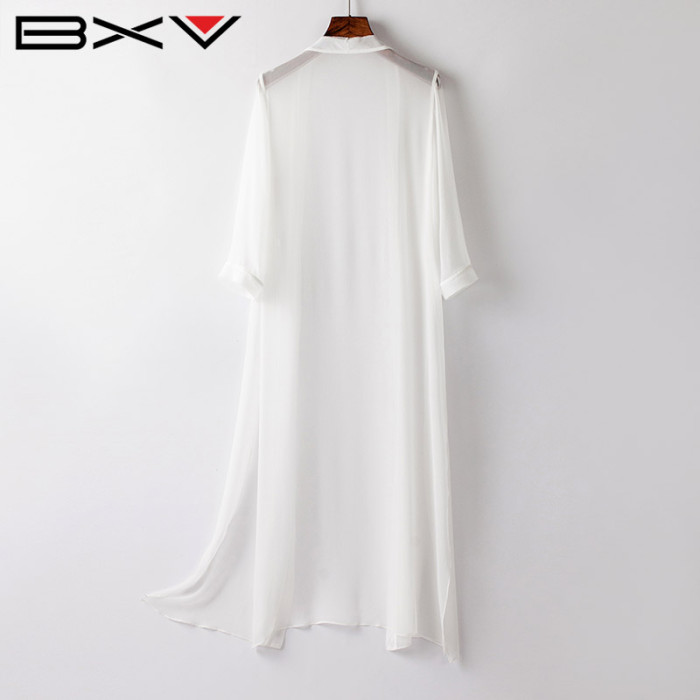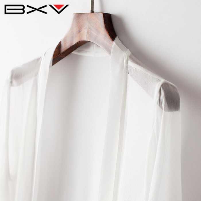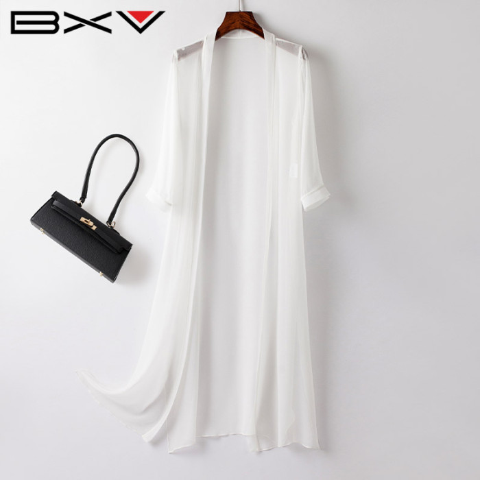 BXV桑蠶絲開衫女中長款夏季外披真絲外套防曬衣外搭長款防曬服仙