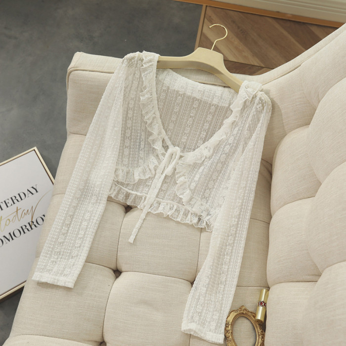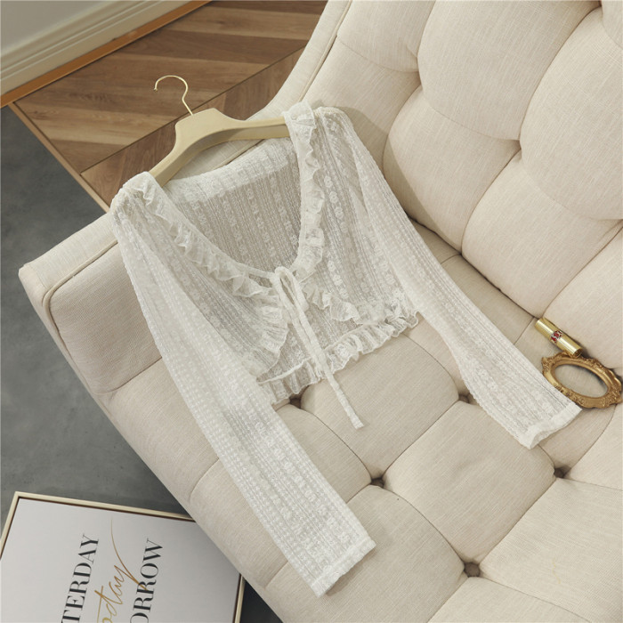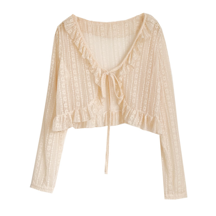 蕾絲防曬衣女夏薄款2025新款披肩短款開衫配裙子雪紡寬松休閒外套