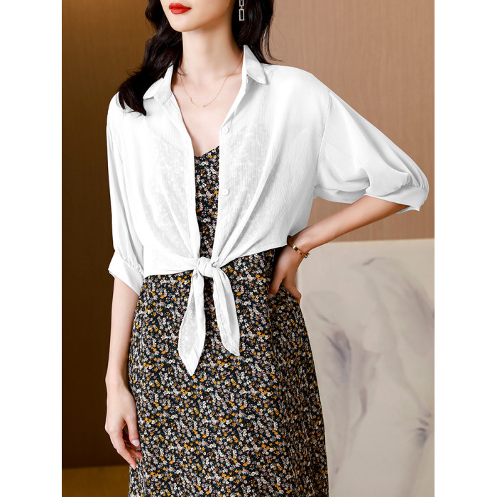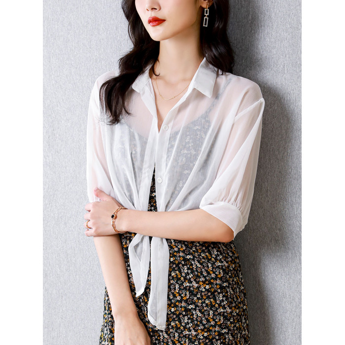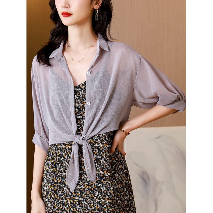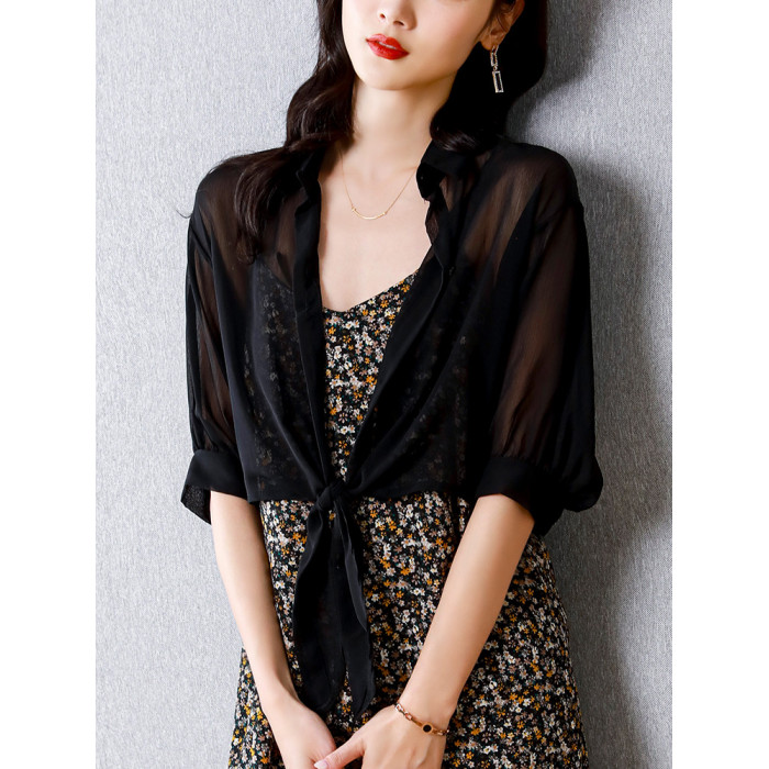 雪紡襯衫防曬衣短袖開衫外套女士小披肩夏季配裙子吊帶裙外搭罩衫