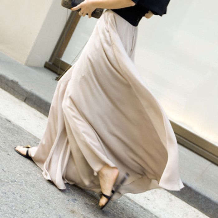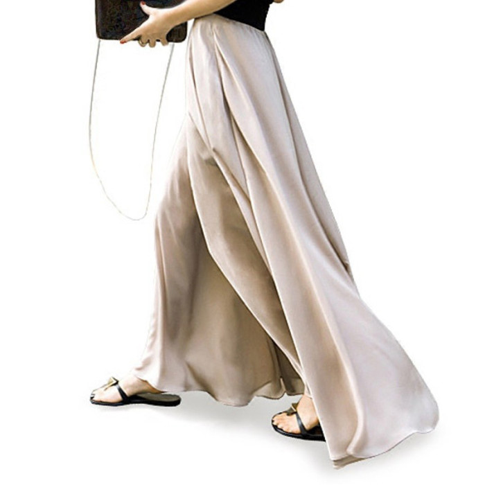 顯瘦濶腿褲女夏季高腰長褲子寬松緞面雪紡度假沙灘褲休閒褲裙褲