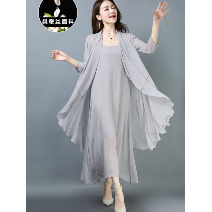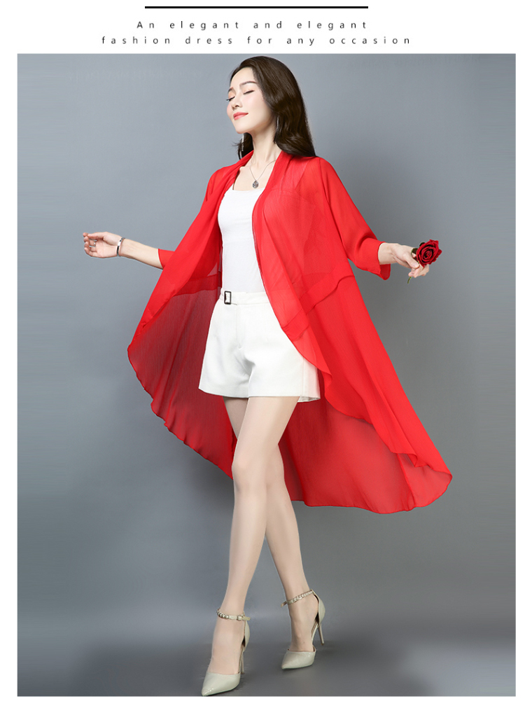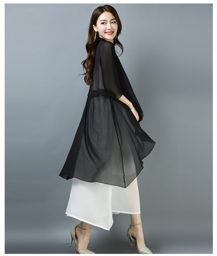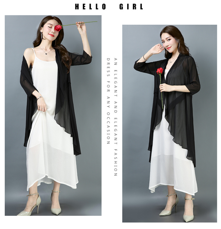 真絲外披長開衫防曬衣女雪紡桑蠶絲披肩薄紗外套夏吊帶裙外搭罩衫