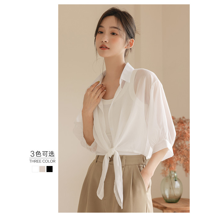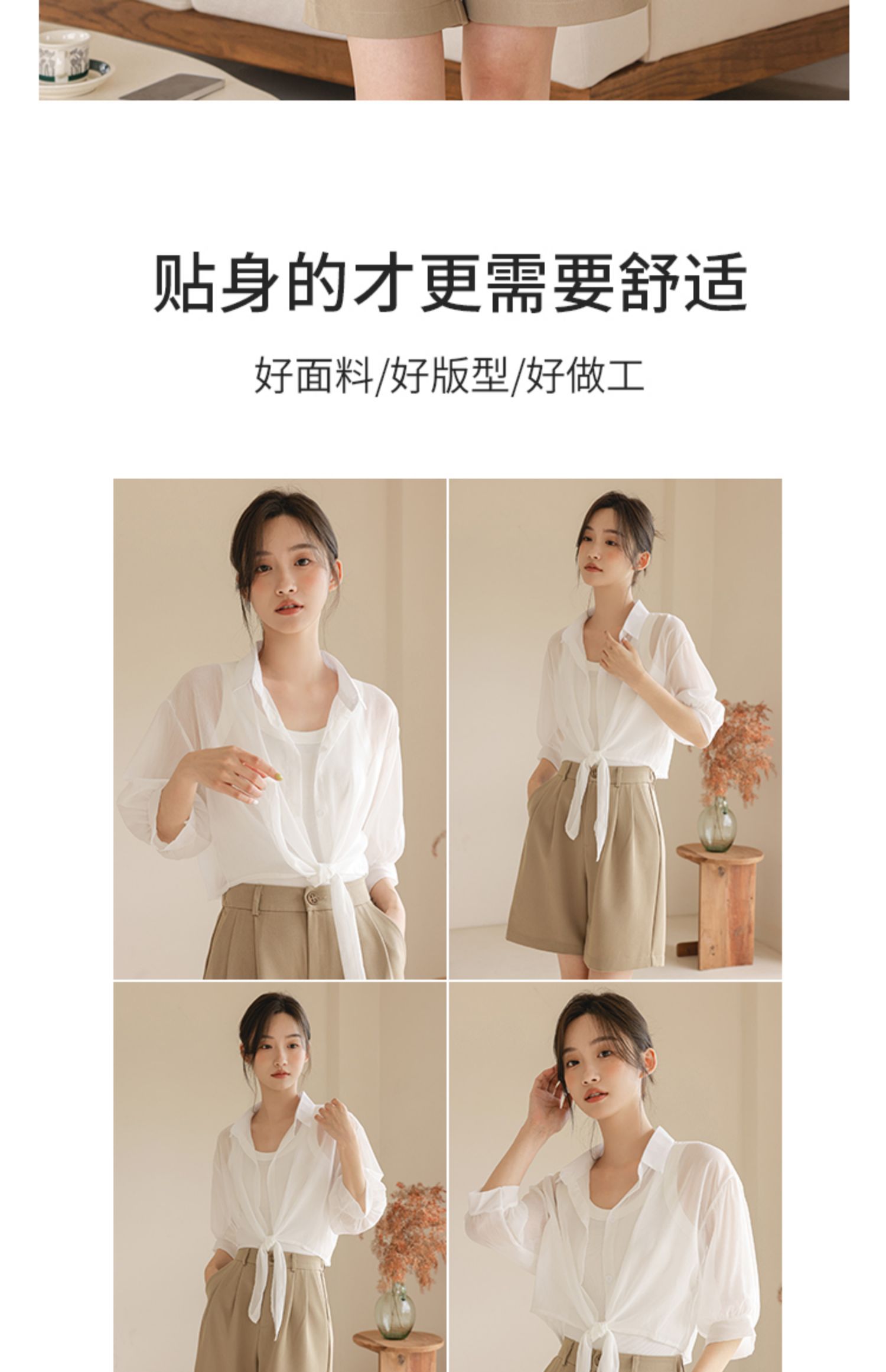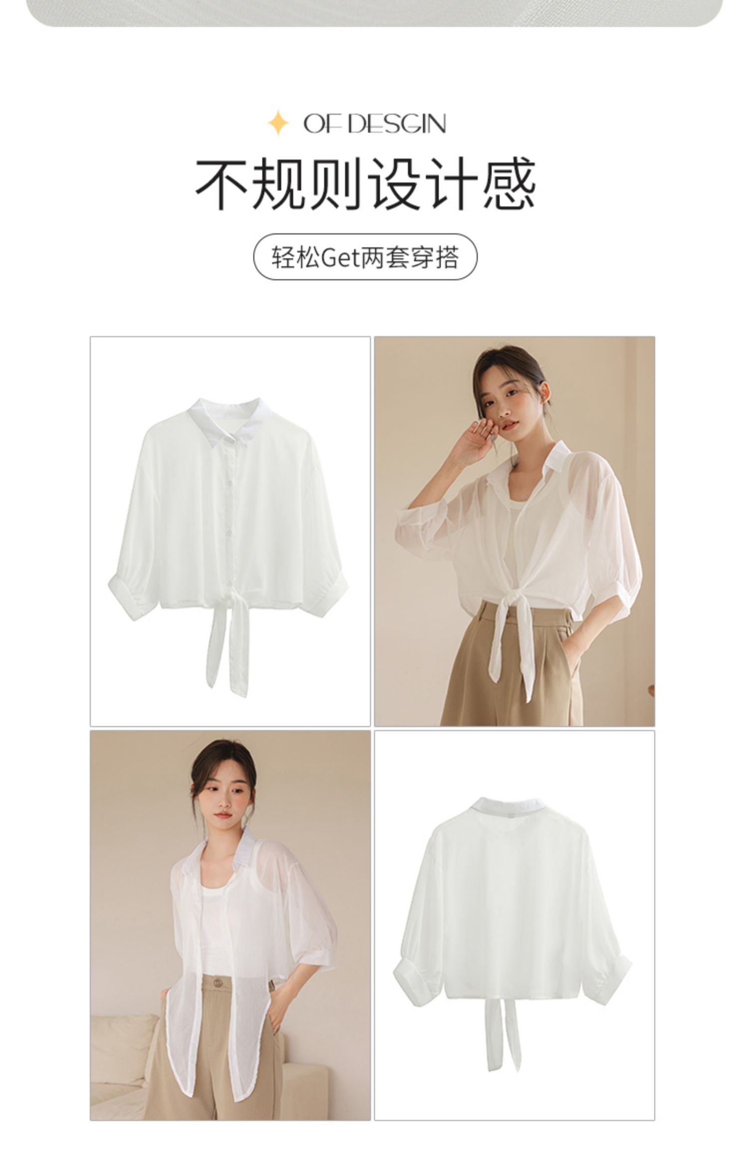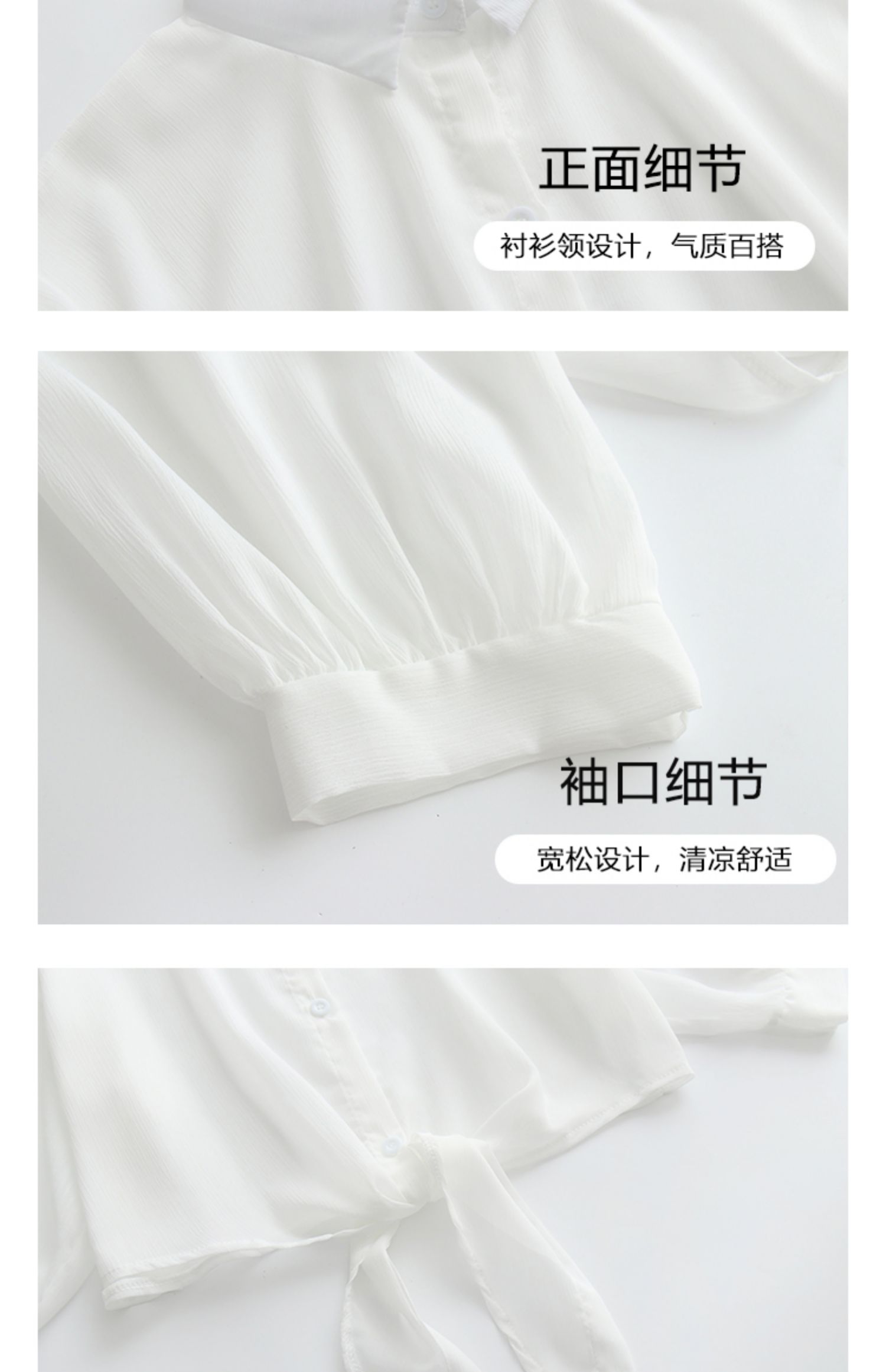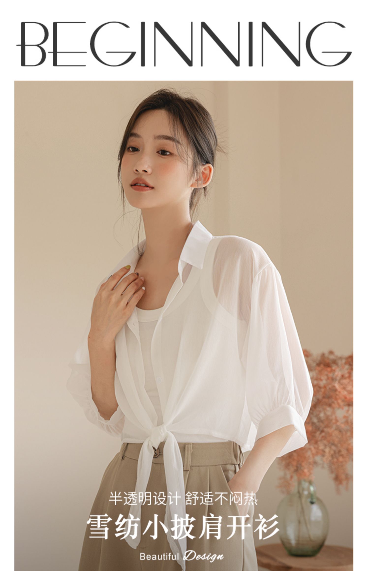 雪紡防曬衣開衫女2025年夏季白色七分袖薄款披肩外搭襯衫上衣外套