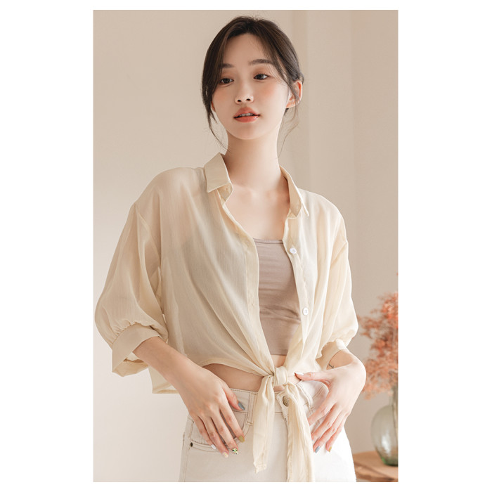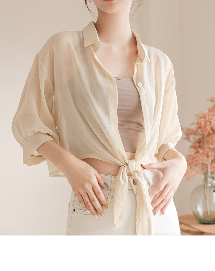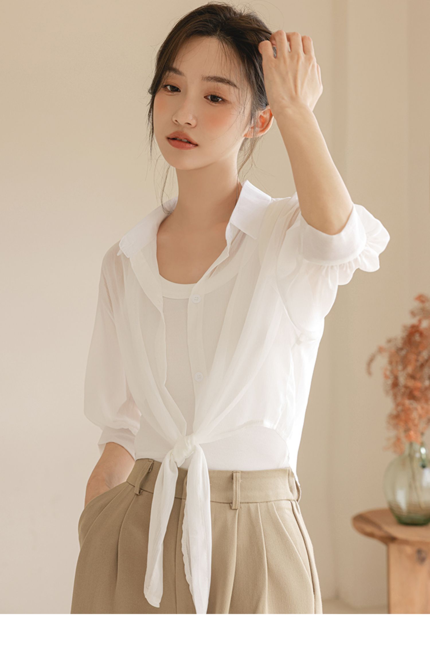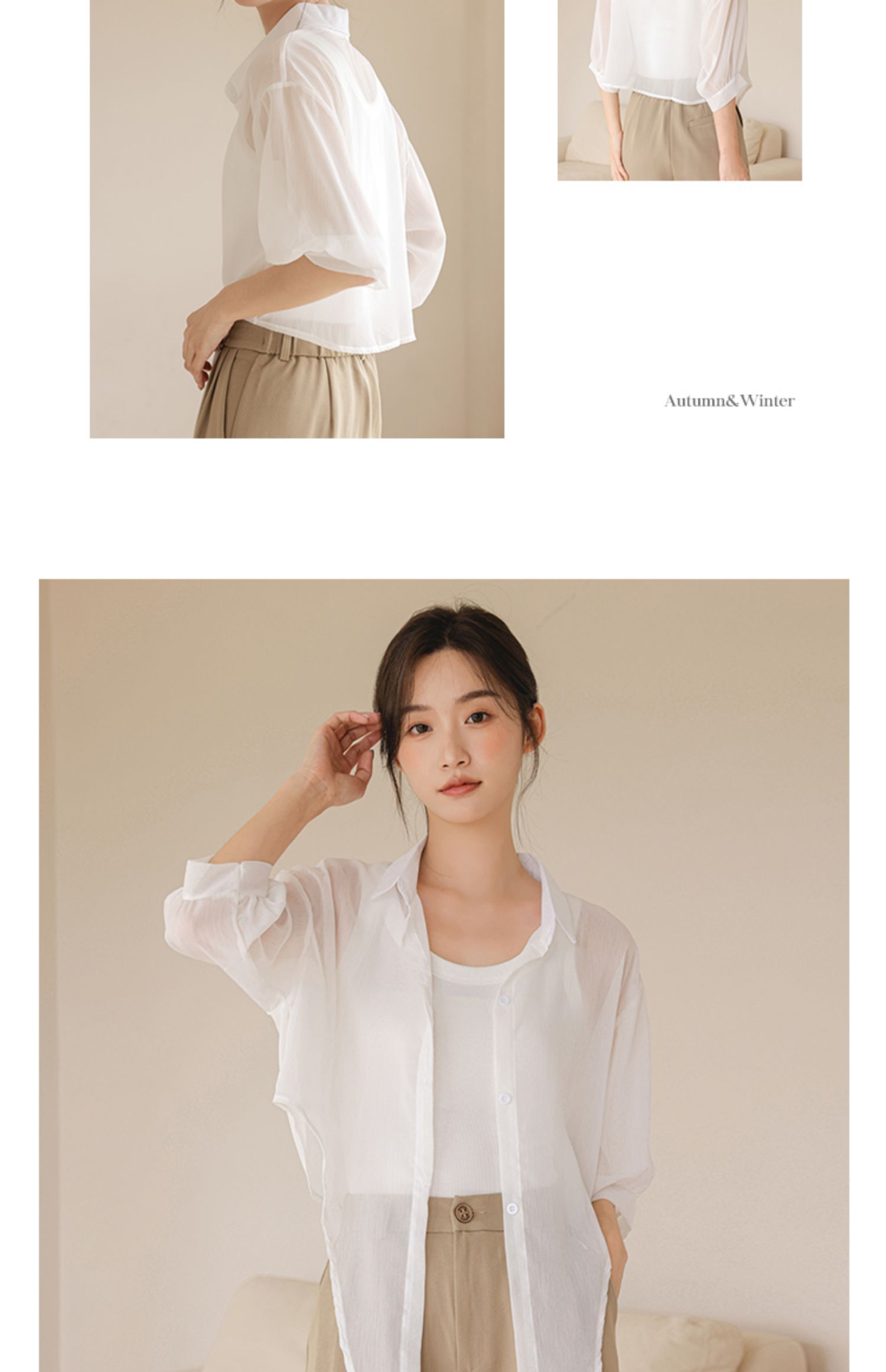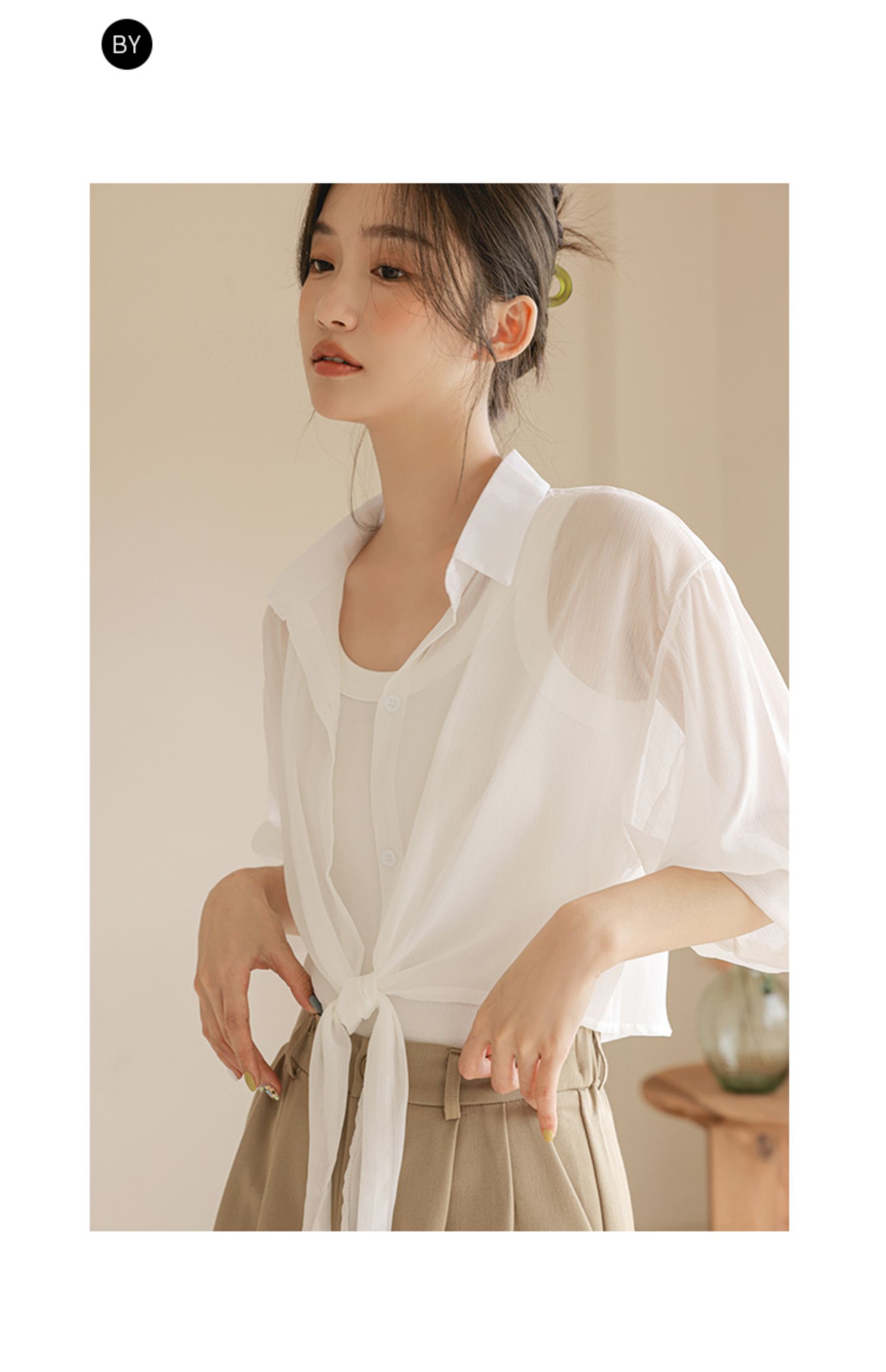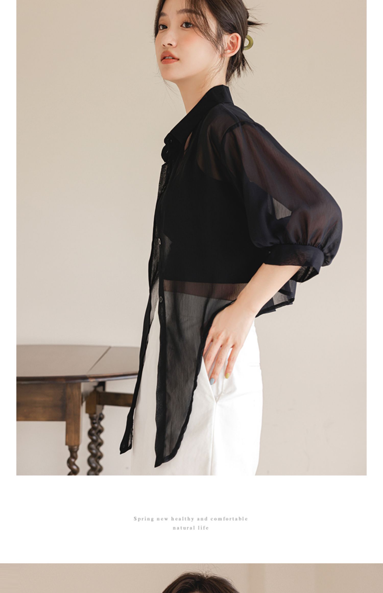 雪紡防曬衣開衫女2025年夏季白色七分袖薄款披肩外搭襯衫上衣外套