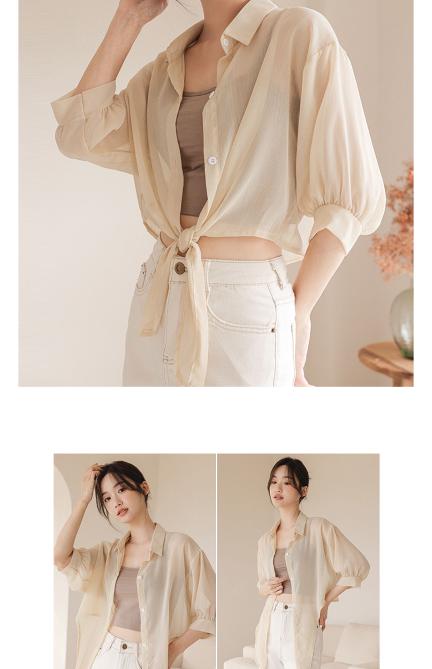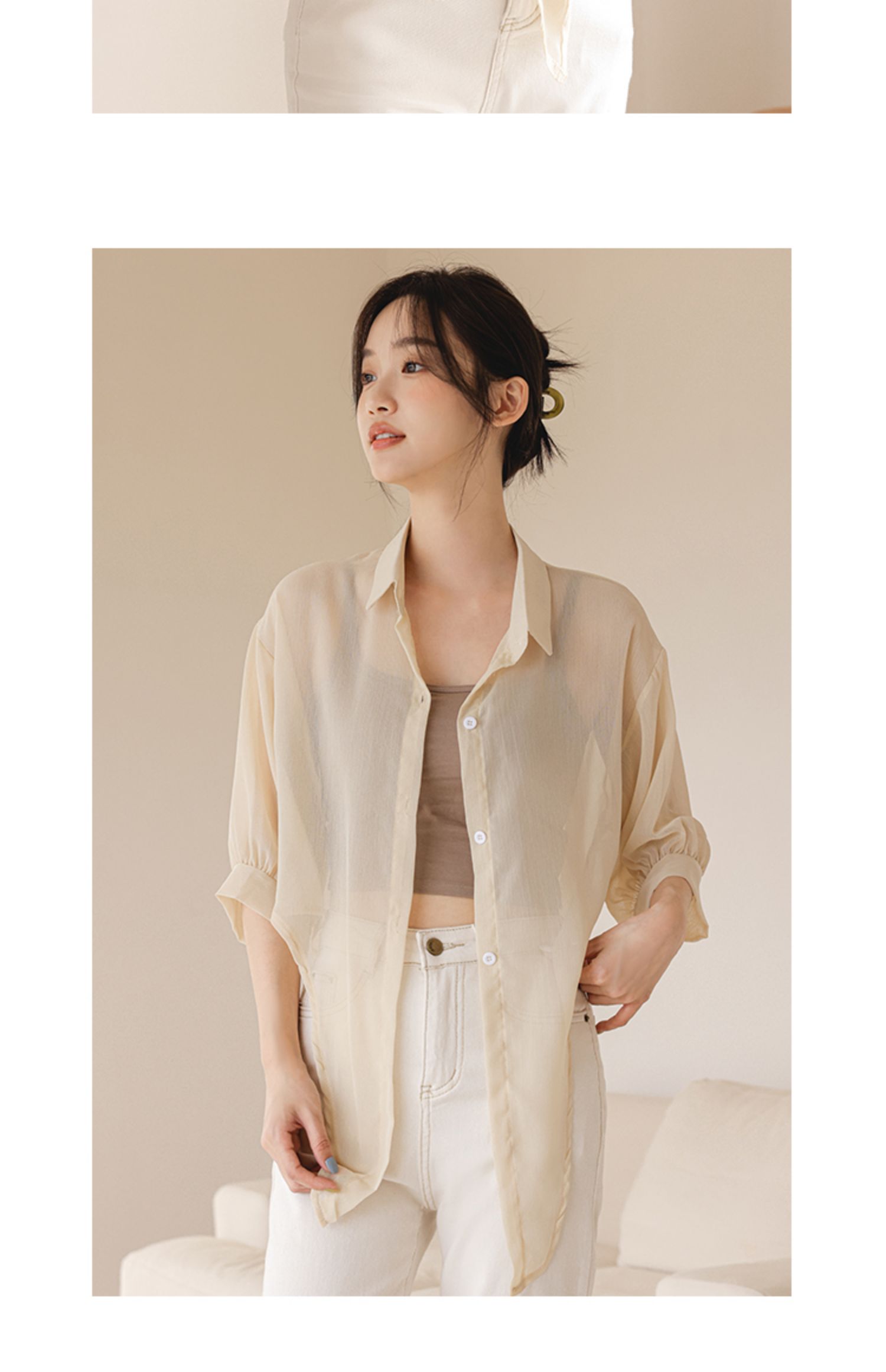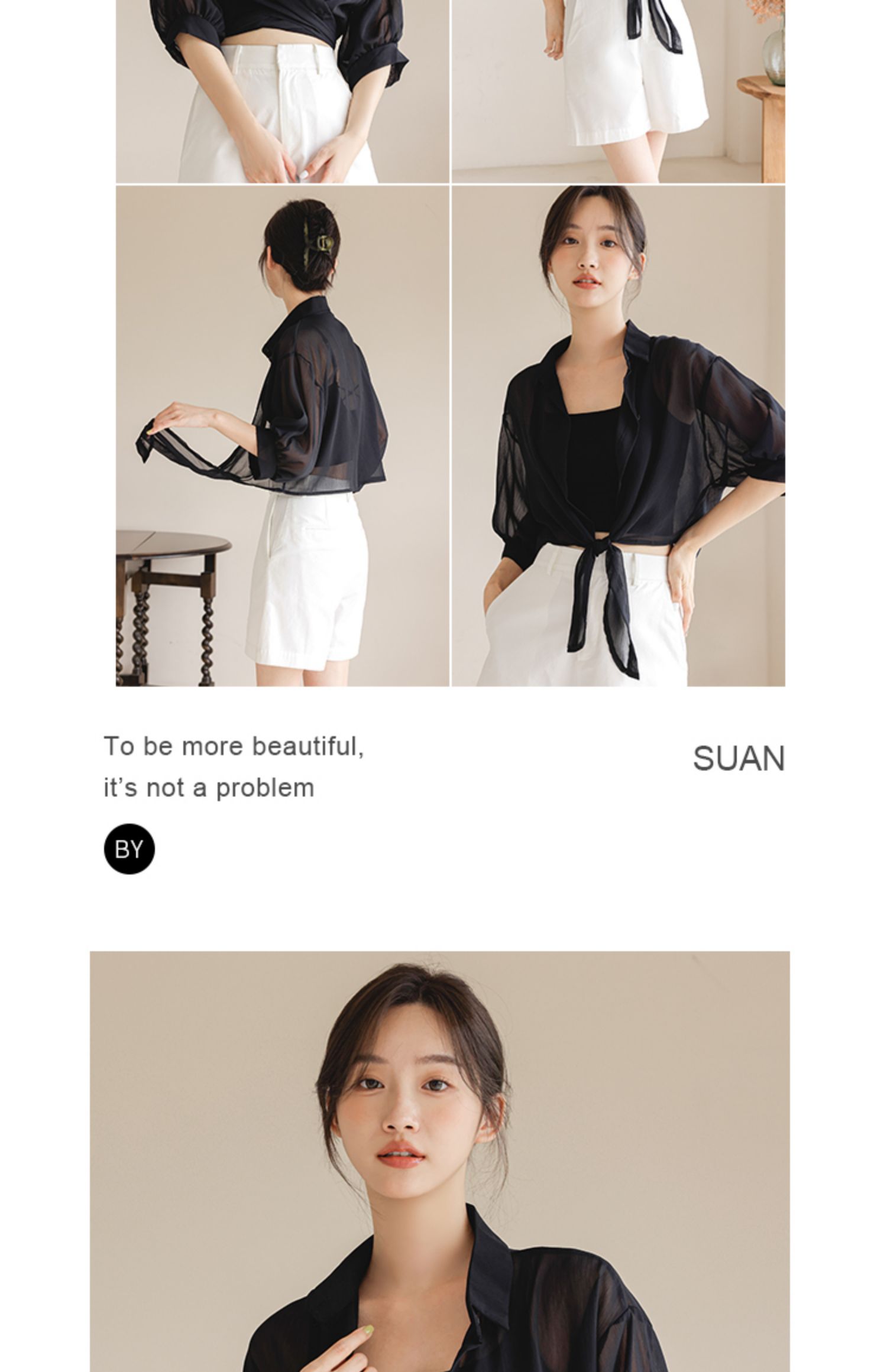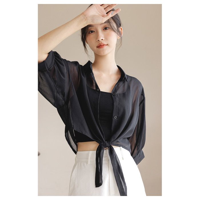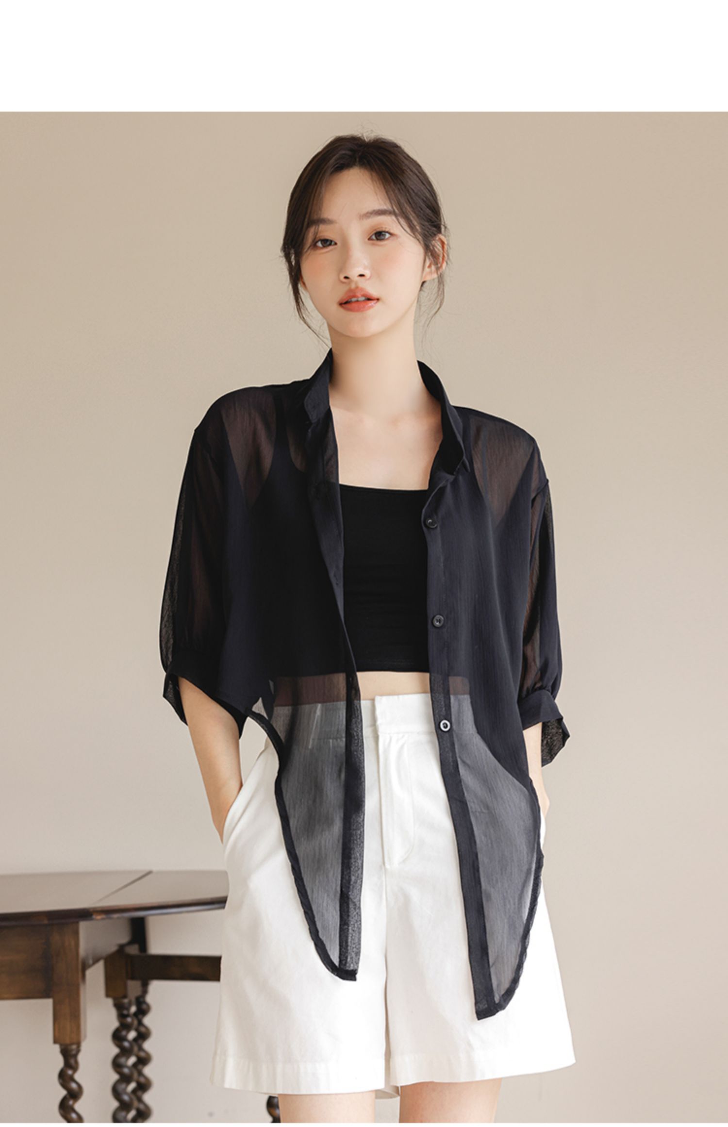 雪紡防曬衣開衫女2025年夏季白色七分袖薄款披肩外搭襯衫上衣外套
