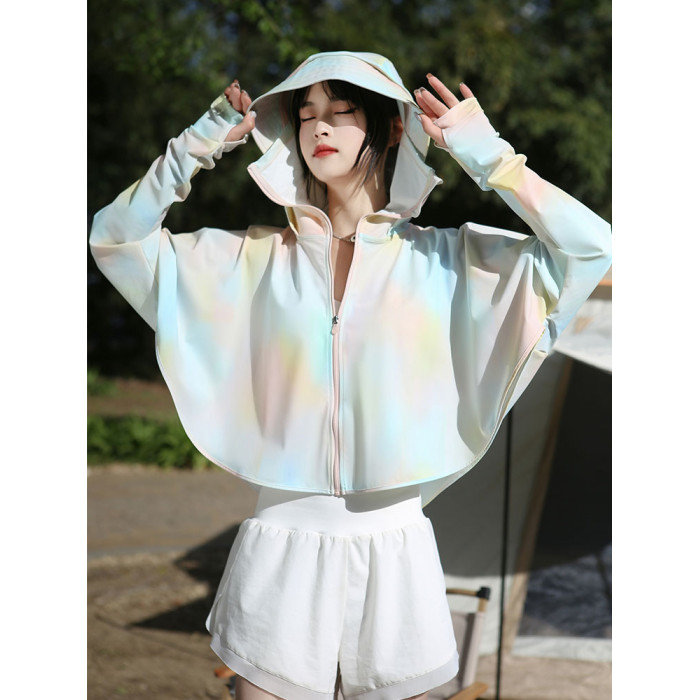 速乾透氣防紫外線原紗短款防曬衣女款冰絲鬭篷戶外防曬服女UPF100