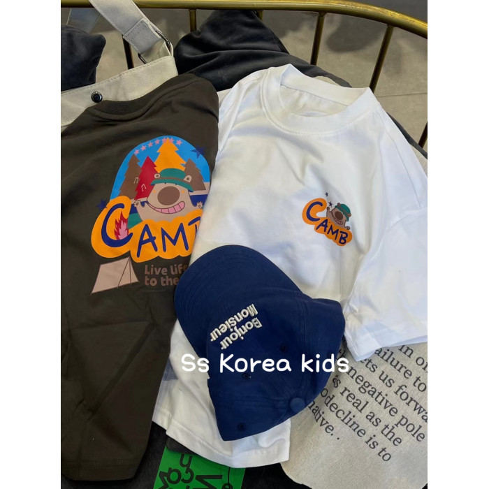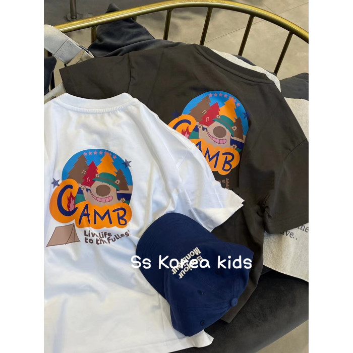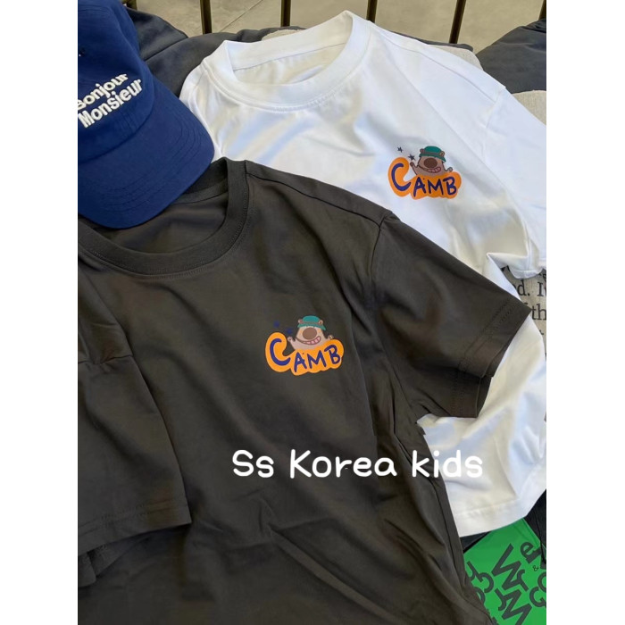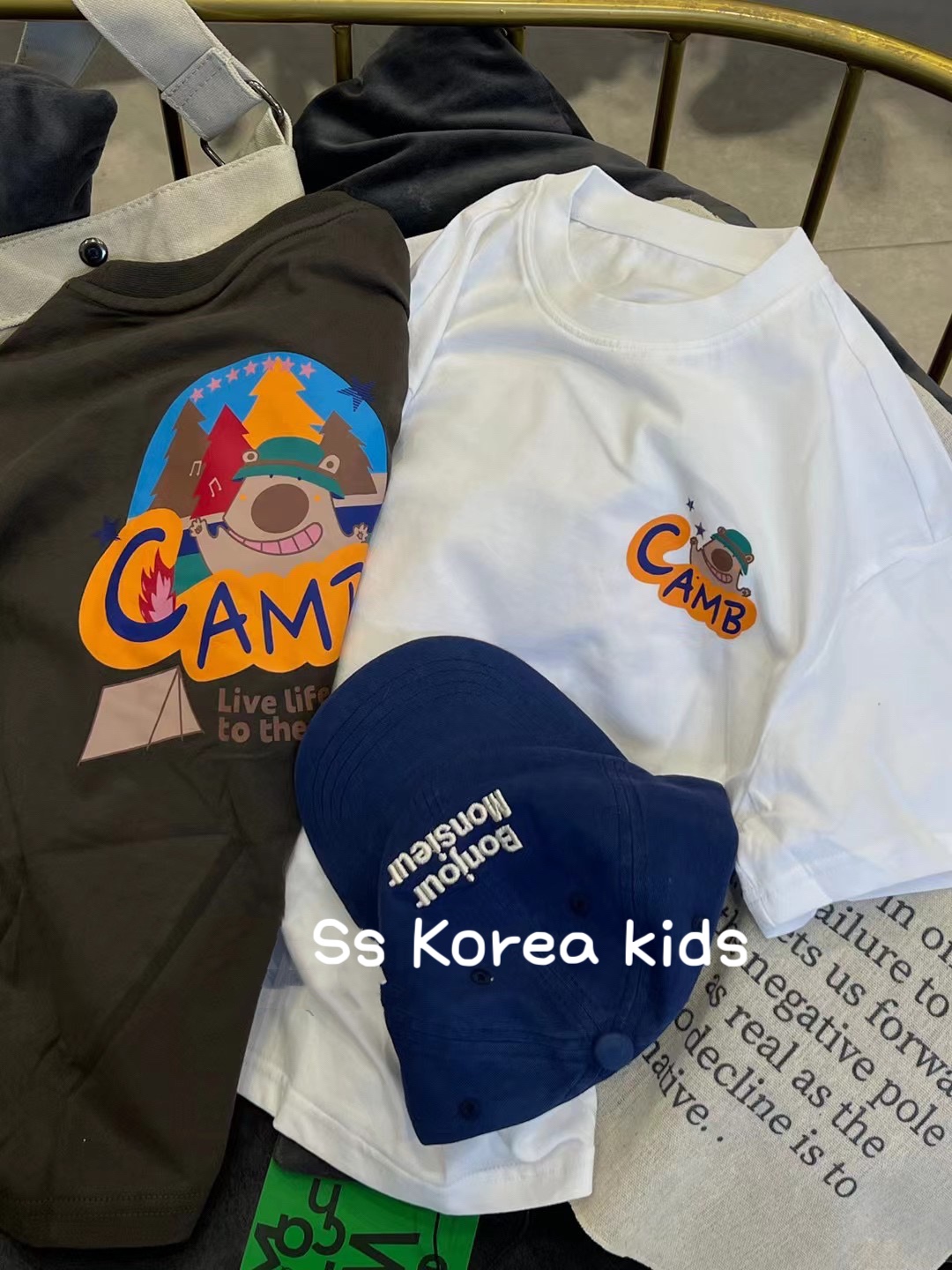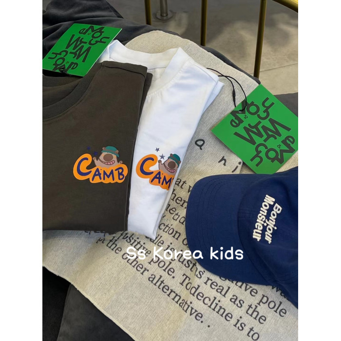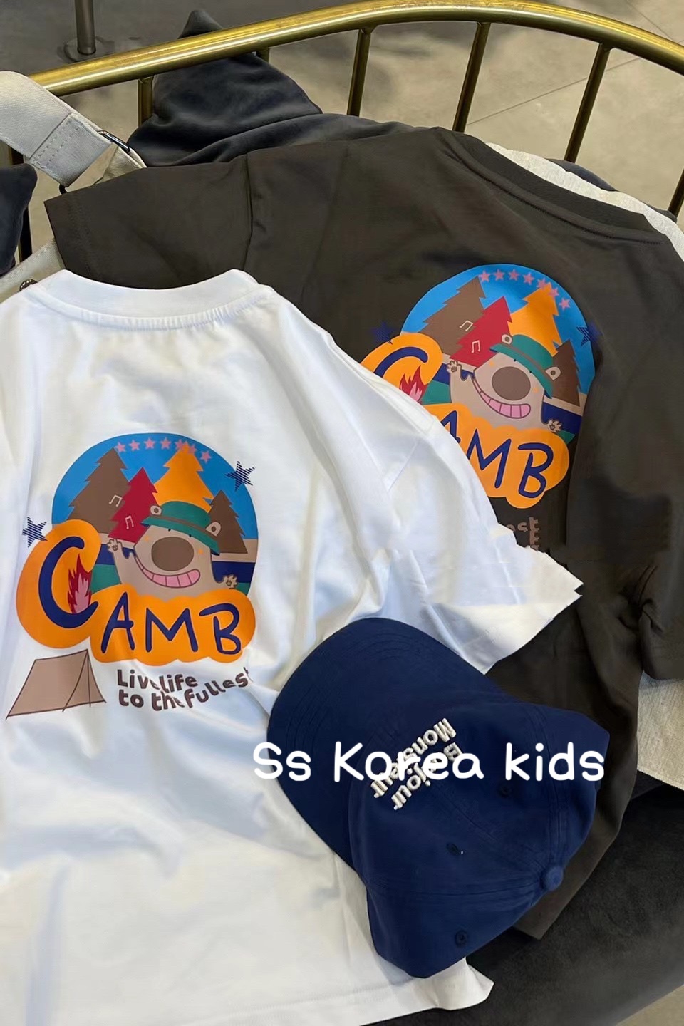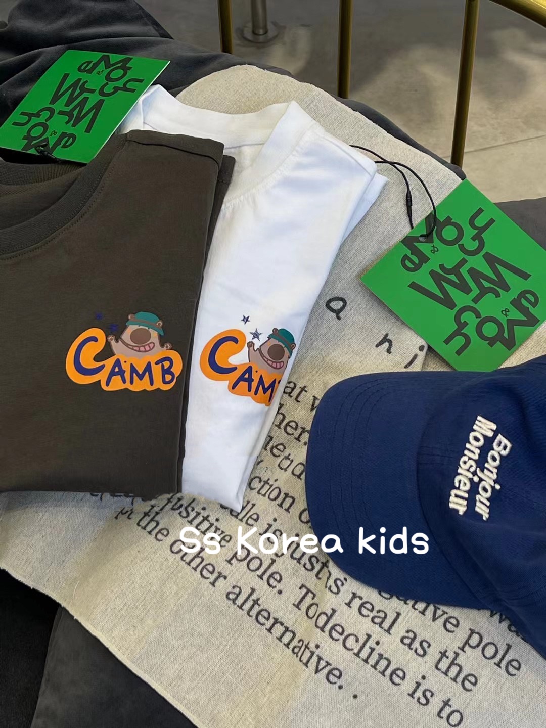 波拉bora韓國童裝男童夏裝上衣洋氣2025女童寬松T恤短袖兒童潮