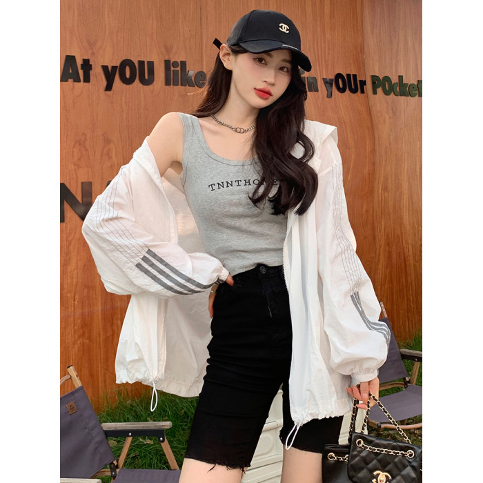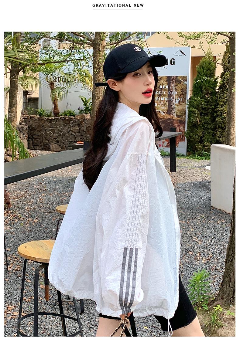防紫外線薄款透氣防曬衣女24春夏百搭寬松大碼連帽運動防曬服外套