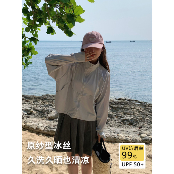 立領防曬衣女2024新款UPF50+冰絲透氣防紫外線寬松無帽防曬服外套