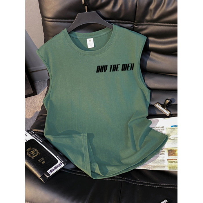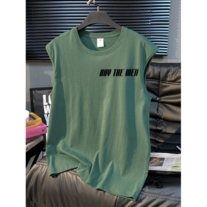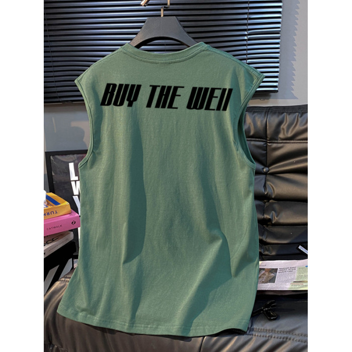 2025夏季新款美式復古高街小衆ins設計款字母印花純棉t恤無袖背心