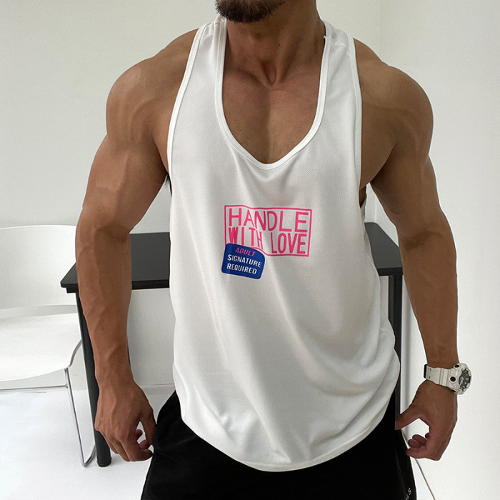 細肩帶挖背速乾背心!運動健身寬松性感無袖T恤肌肉男優良成衣