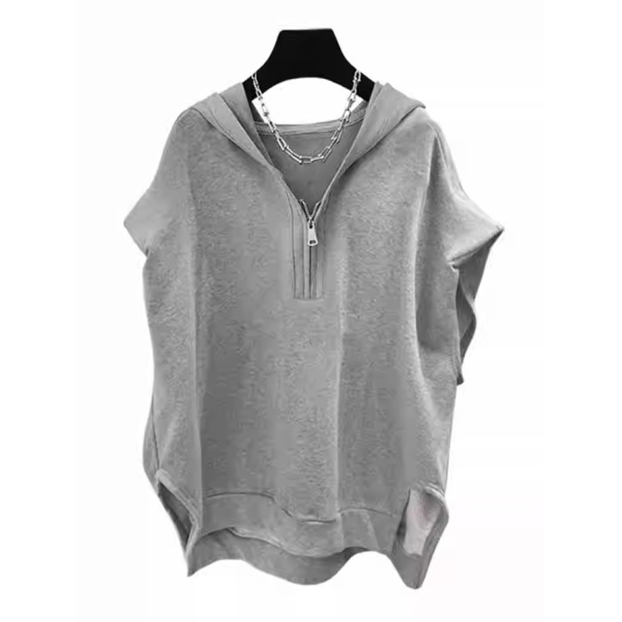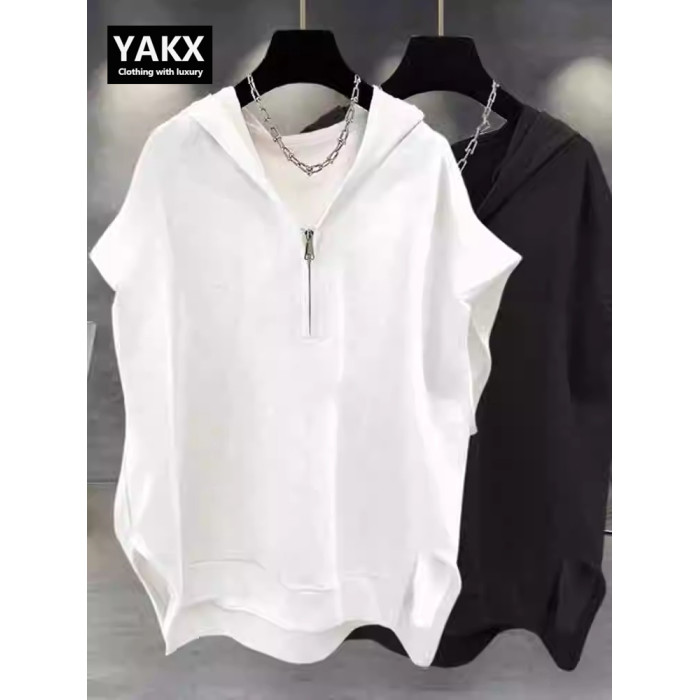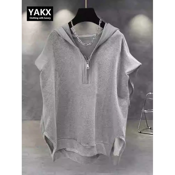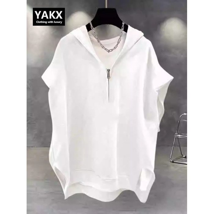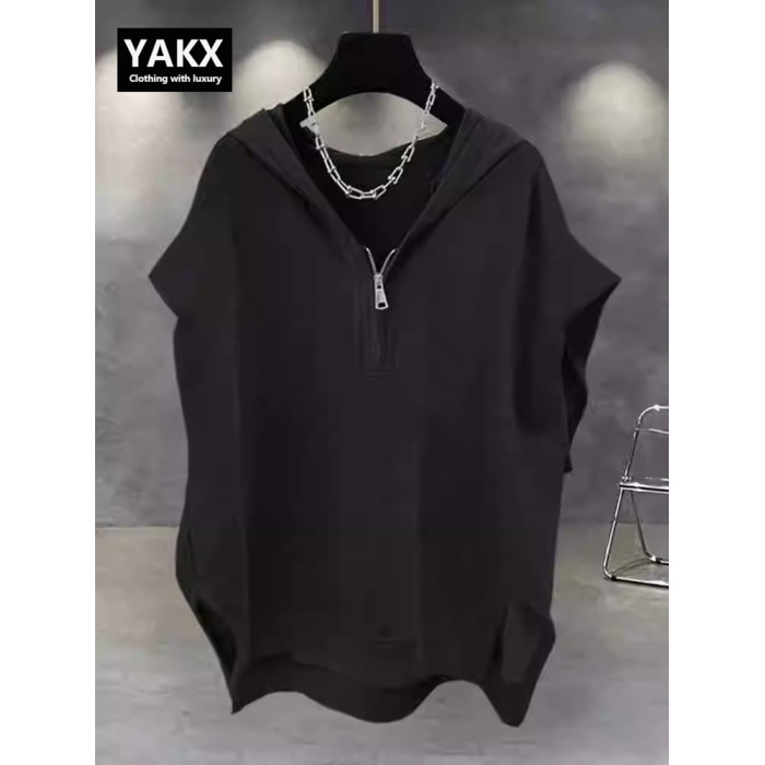 高級半拉鍊連帽背心男士夏季2025新款潮牌寬松純色無袖t恤衫男款