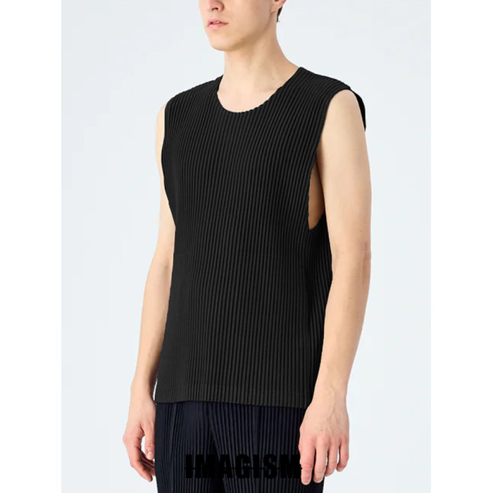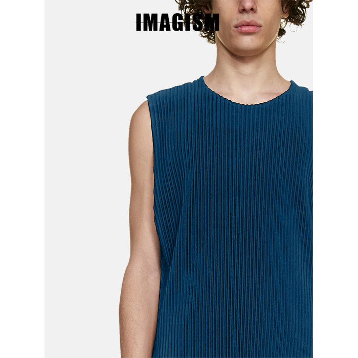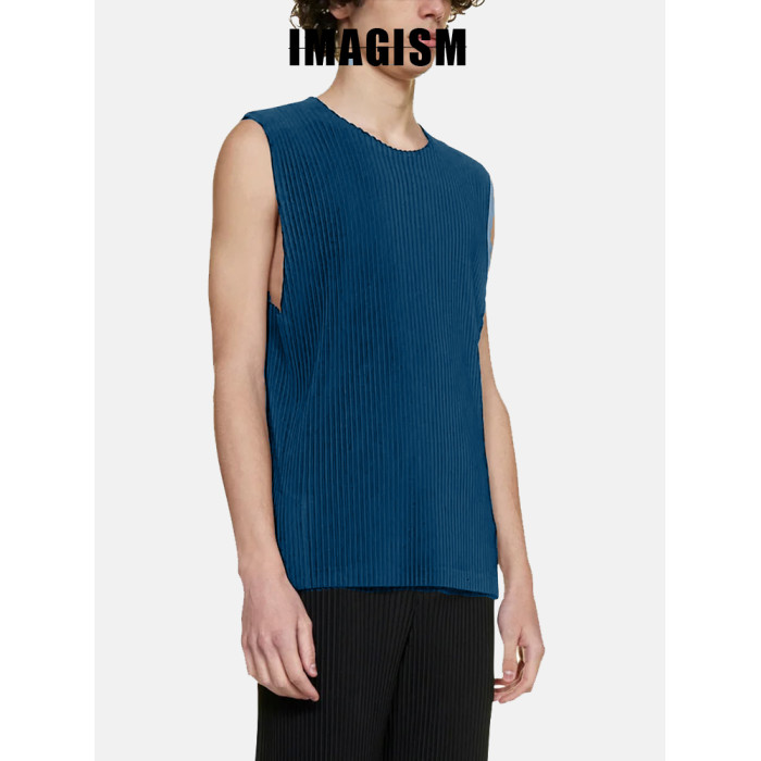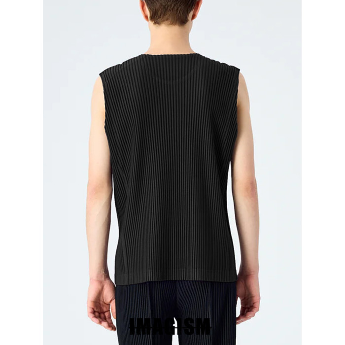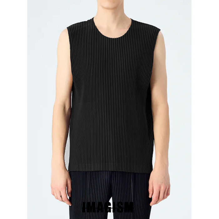 日系三宅風褶皺休閒薄款無袖坎肩打底衫背心男女