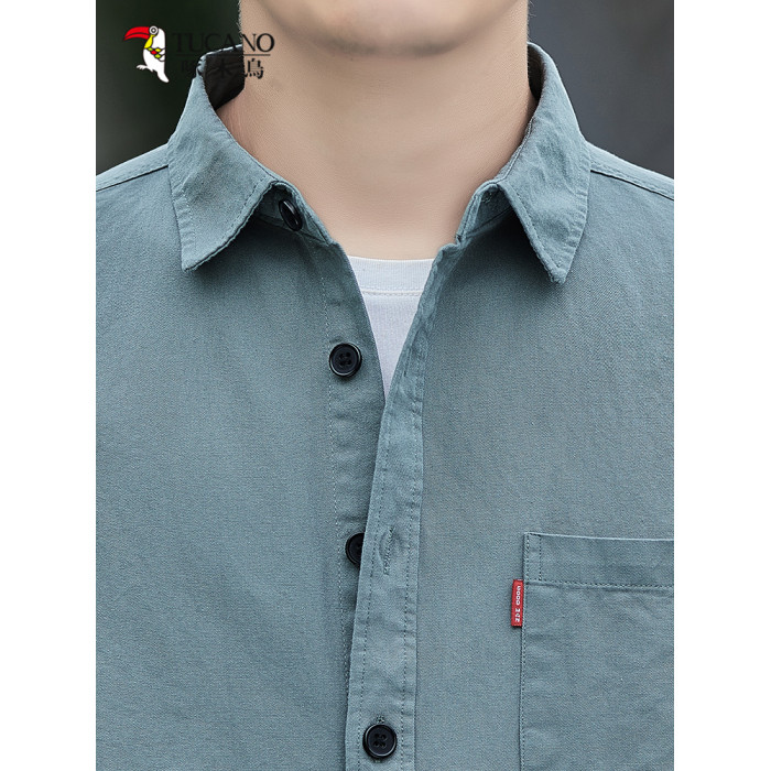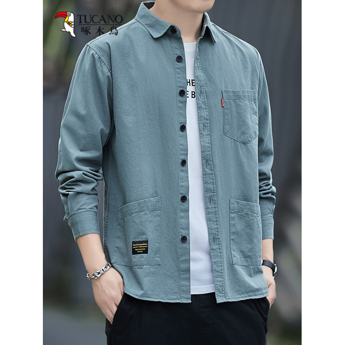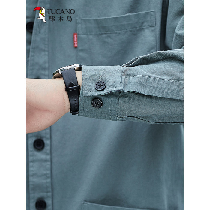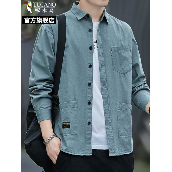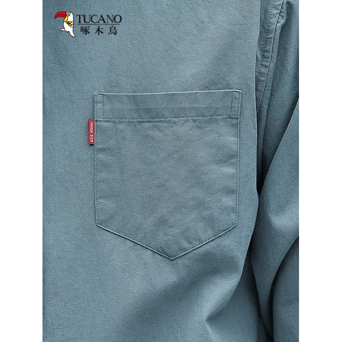 啄木鳥純棉工裝長袖襯衫男士商務襯衣中青年春裝休閒外套上衣服C