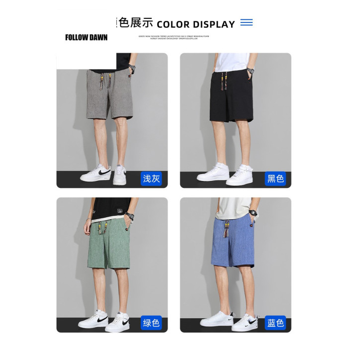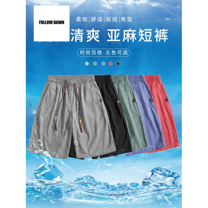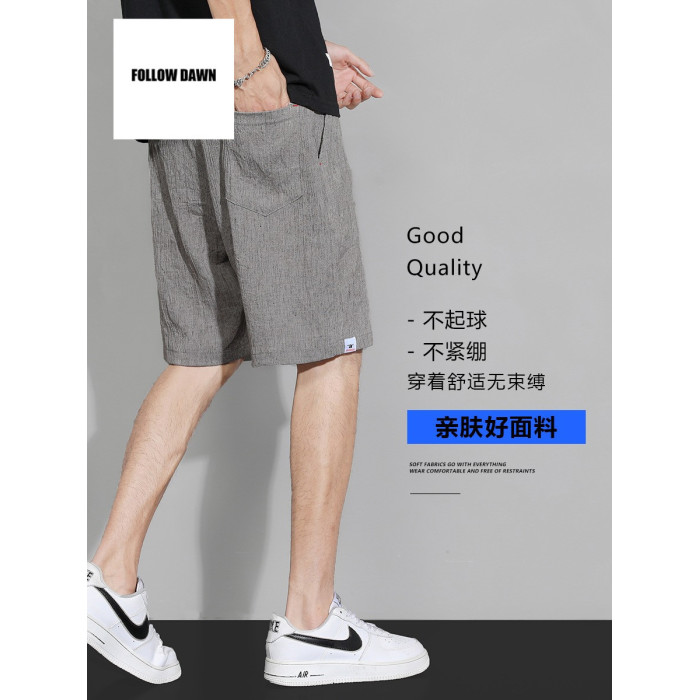 短褲男士夏季薄款冰絲速乾運動休閒五分中褲子潮牌亞麻褲