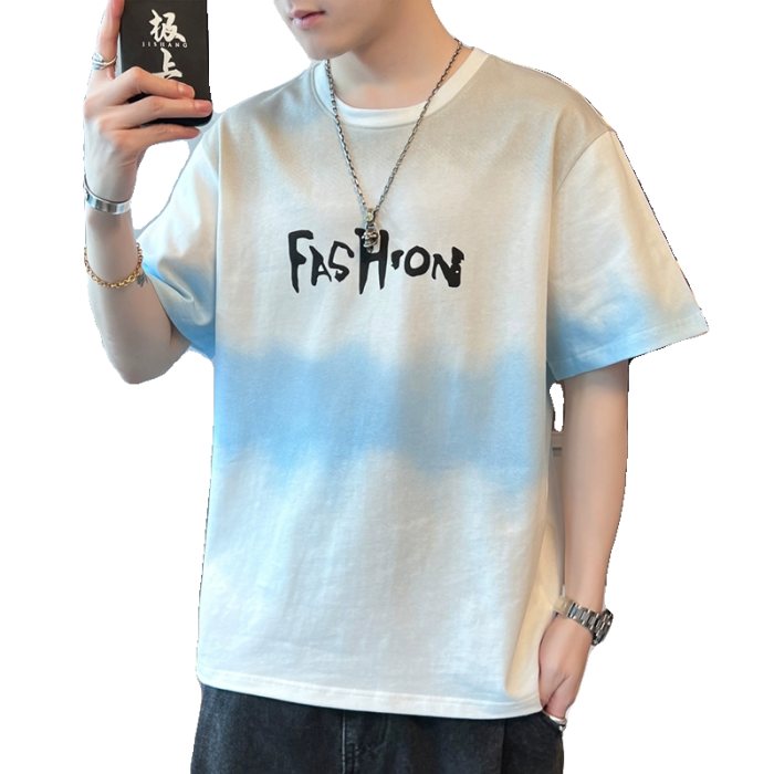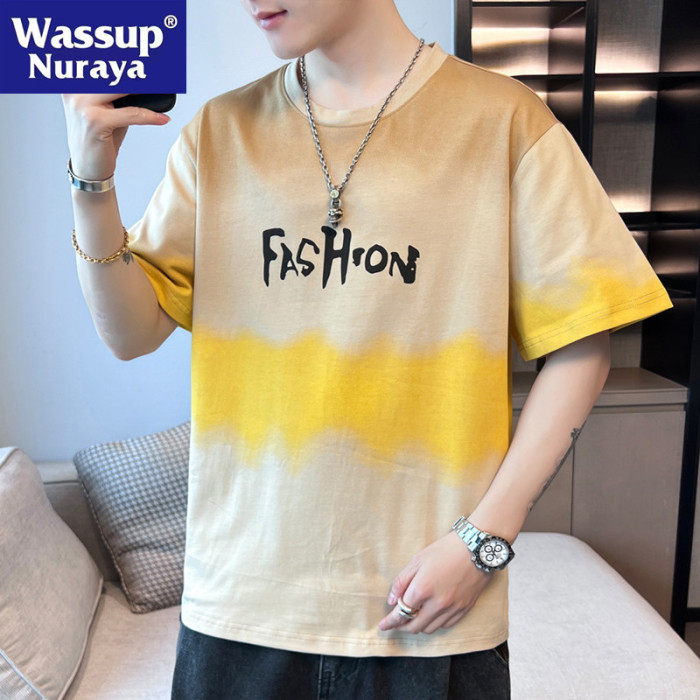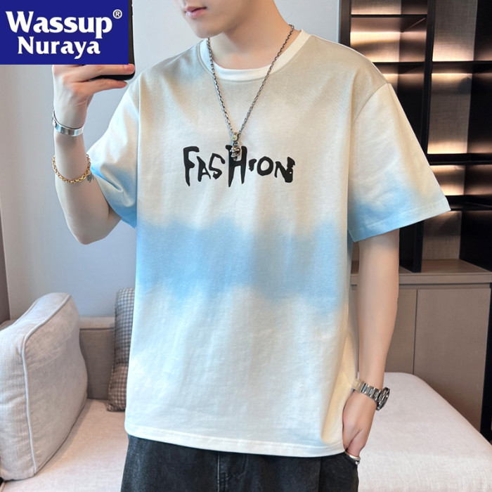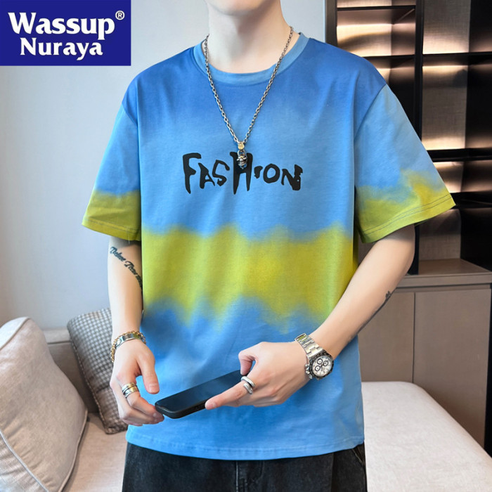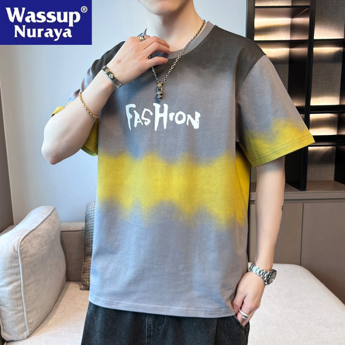 WASSUP NURAYA2024新款夏季潮牌學生短袖T恤上衣漸變五分袖體恤男