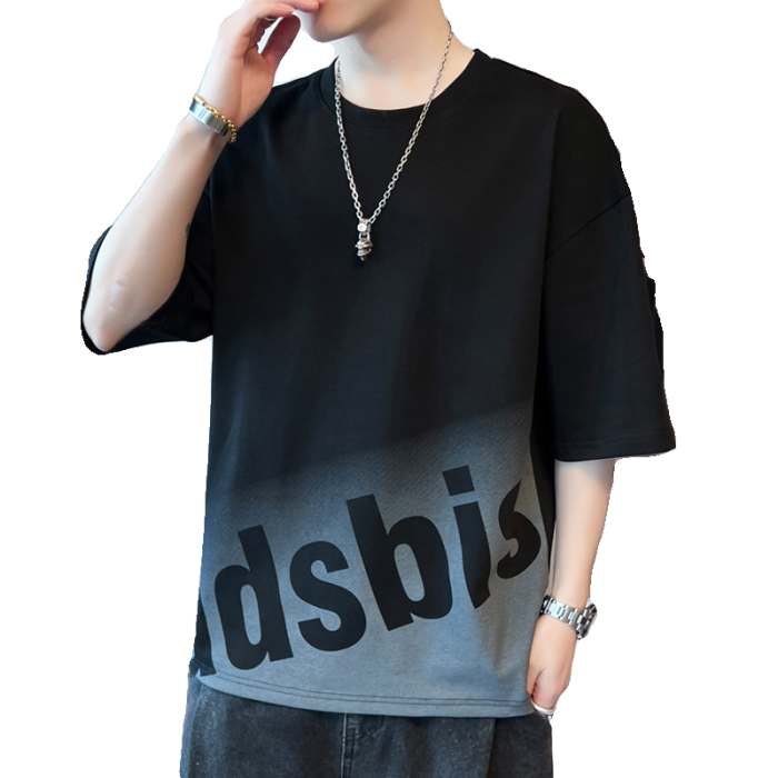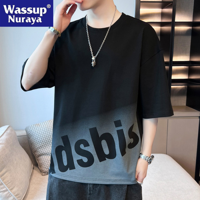 WASSUP NURAYA2024新款夏季潮牌學生短袖體恤漸變五分袖半袖T恤男