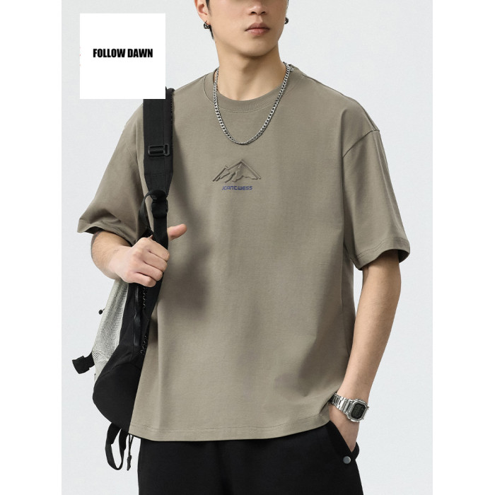 短袖t恤男夏季潮牌ins鋼印百搭寬松半袖男士休閒圓領上衣