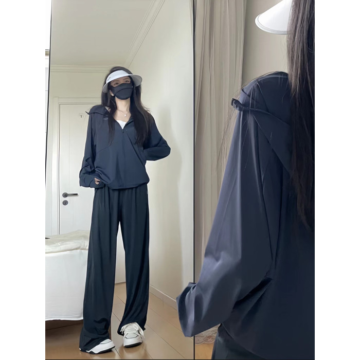 福覔橘長袖冰絲防曬衣女2025新款戶外登山旅遊穿搭男款套裝爬山服