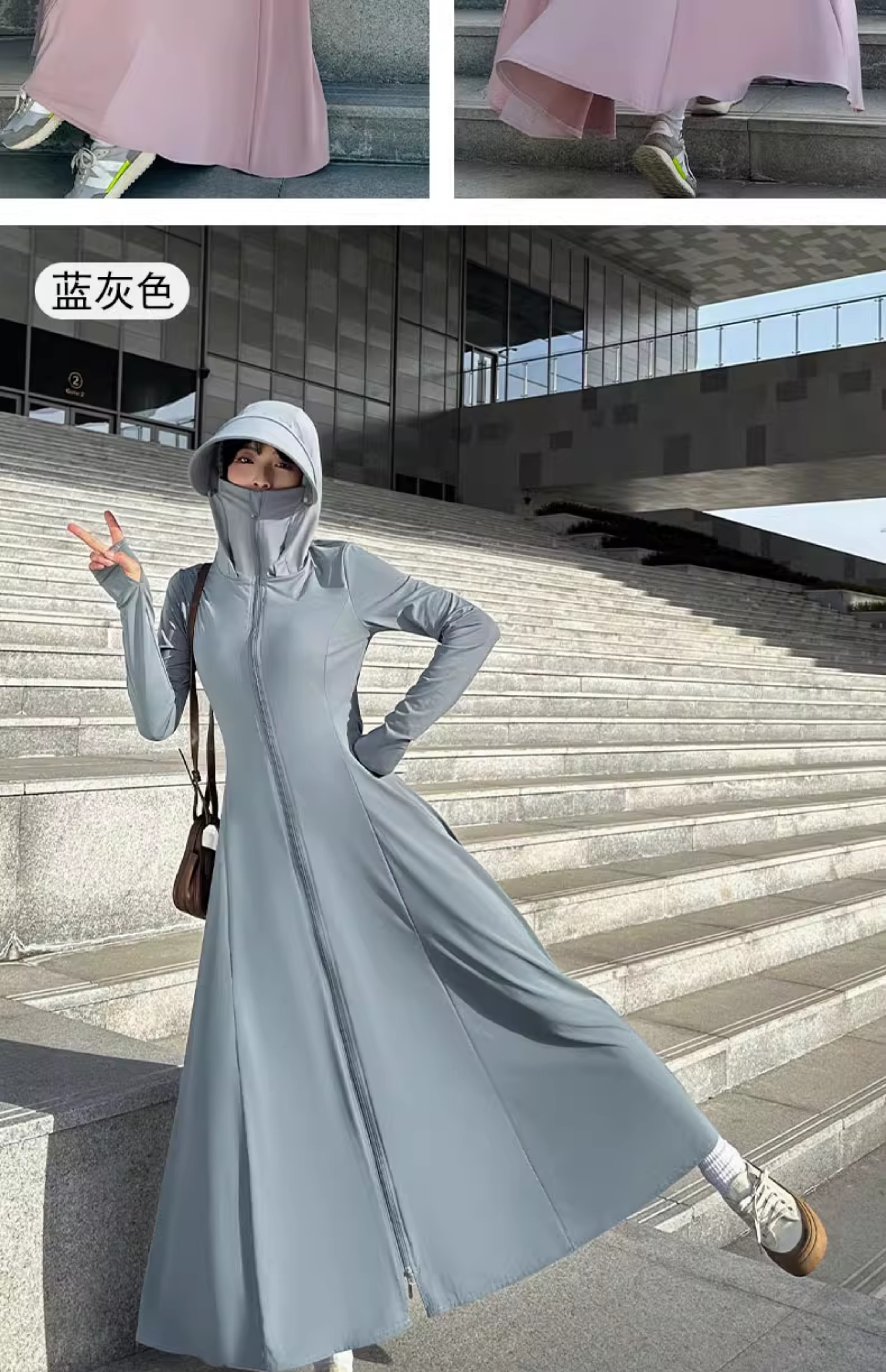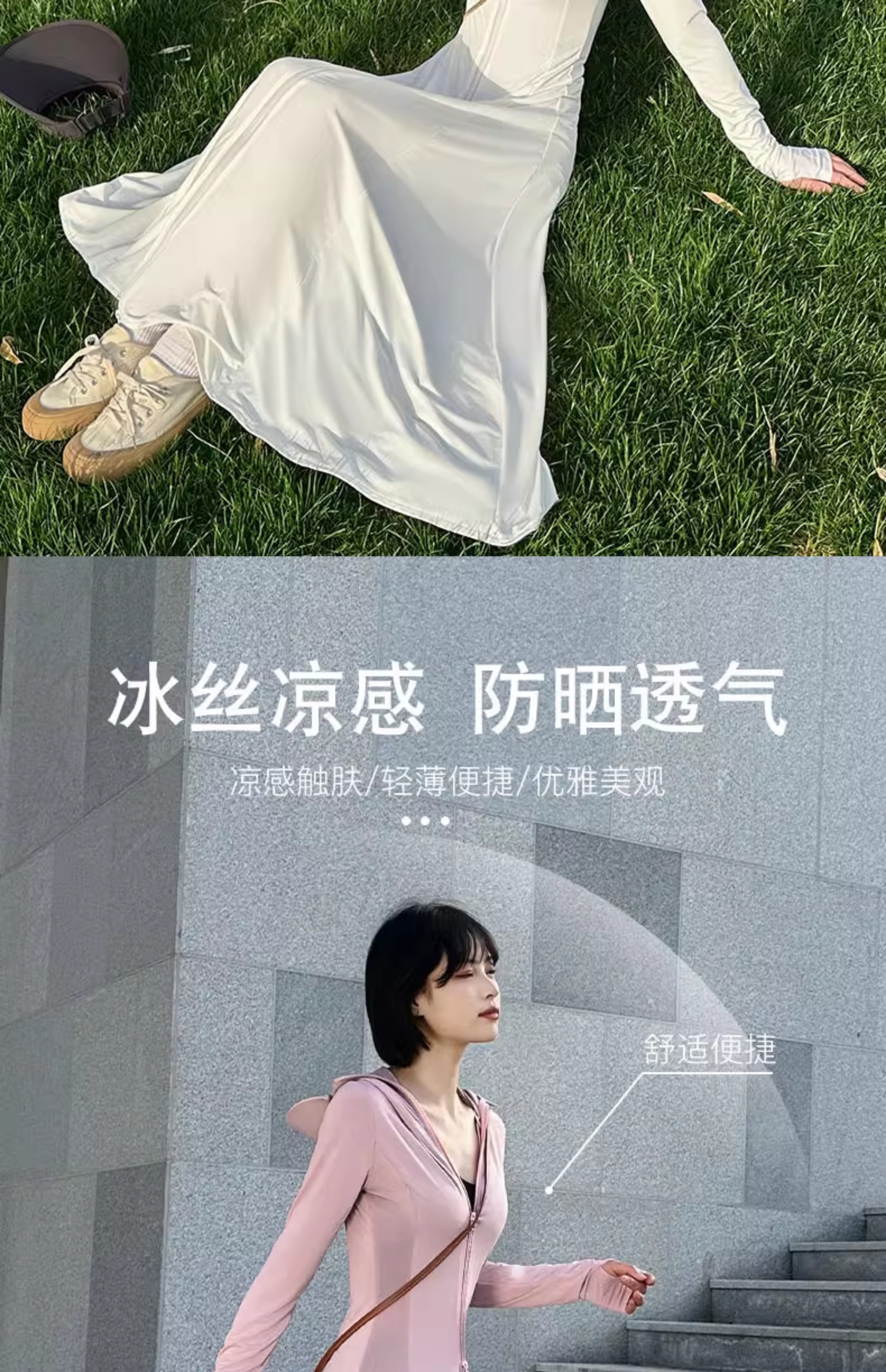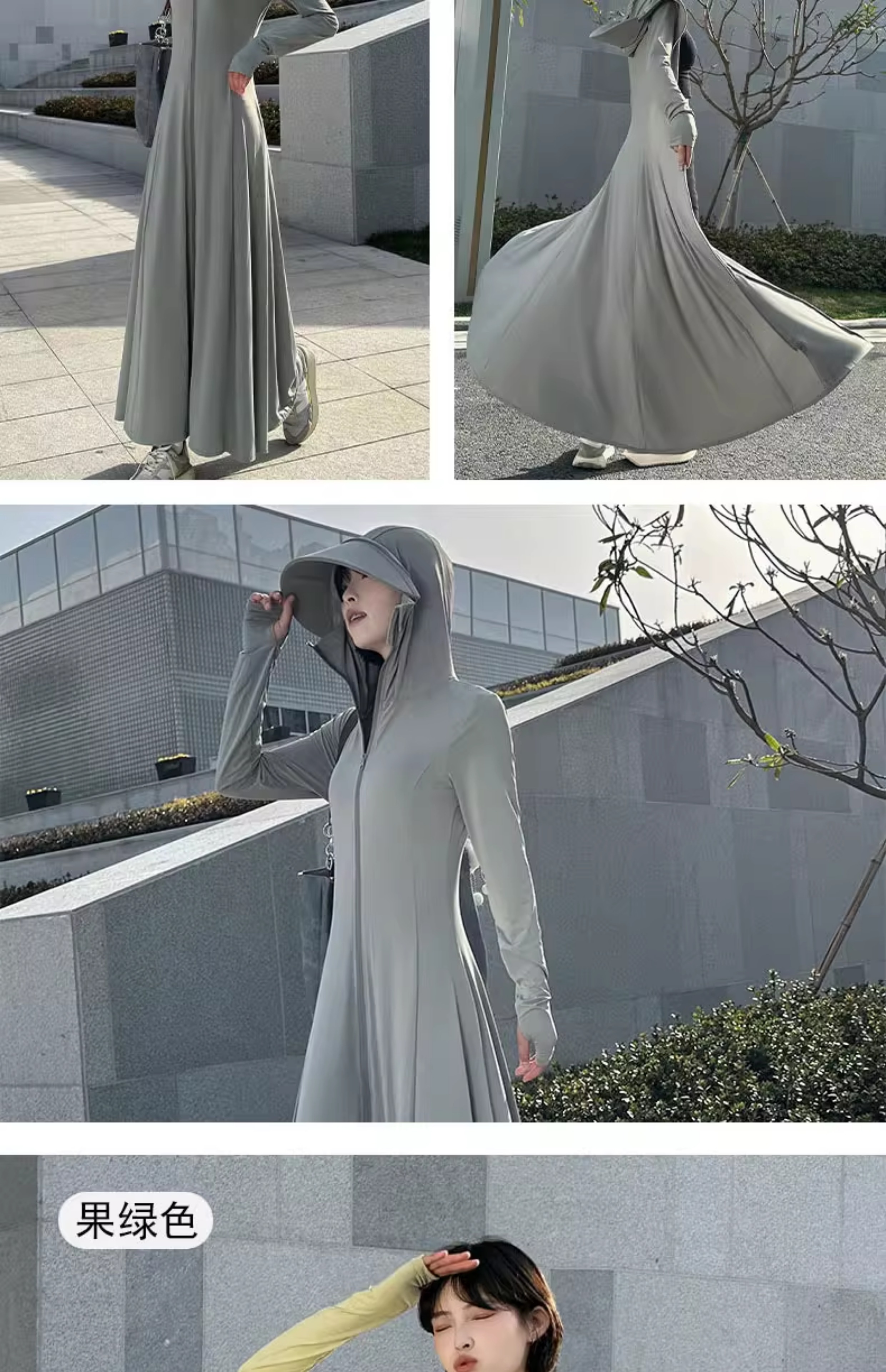 長款全身冰絲防曬衣女裙夏季2025新款修身防紫外線防曬服輕薄外套
