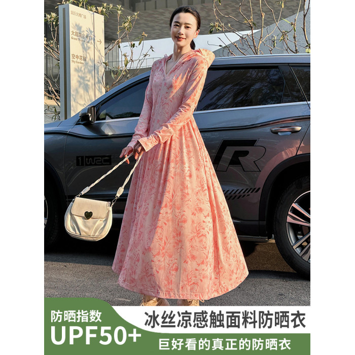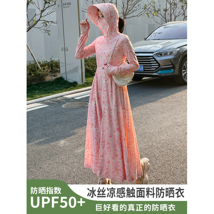 彩色印花長款全身冰絲防曬衣女夏2025新款收腰透氣防紫外線防曬裙
