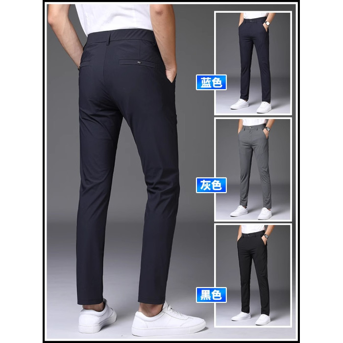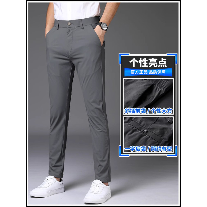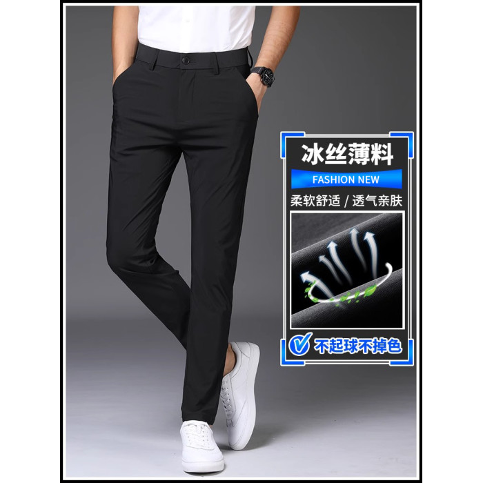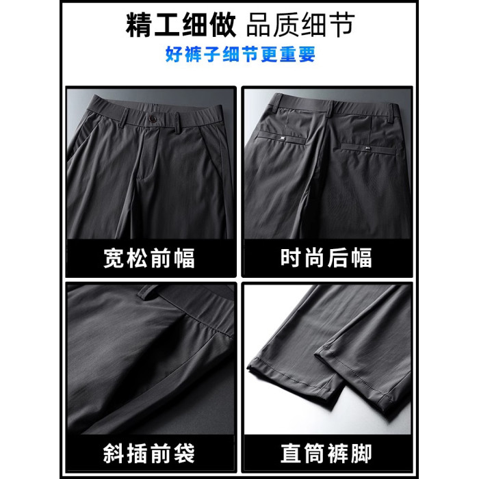 啄木鳥男士冰絲休閒西褲夏季薄款寬松高彈商務正裝通勤速乾褲子K