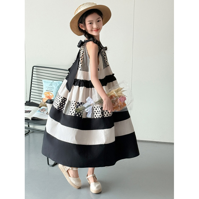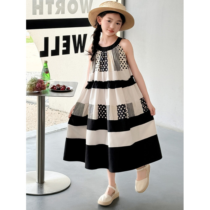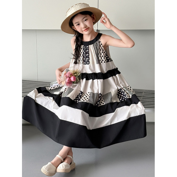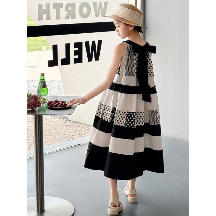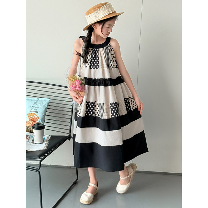 女童夏裝連衣裙2025新款兒童夏季洋氣拼接背心裙中大童寬松度假裙