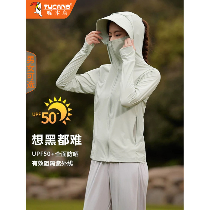啄木鳥UPF50+冰絲防曬衣女夏2025新款防紫外線原紗防曬服薄款外套