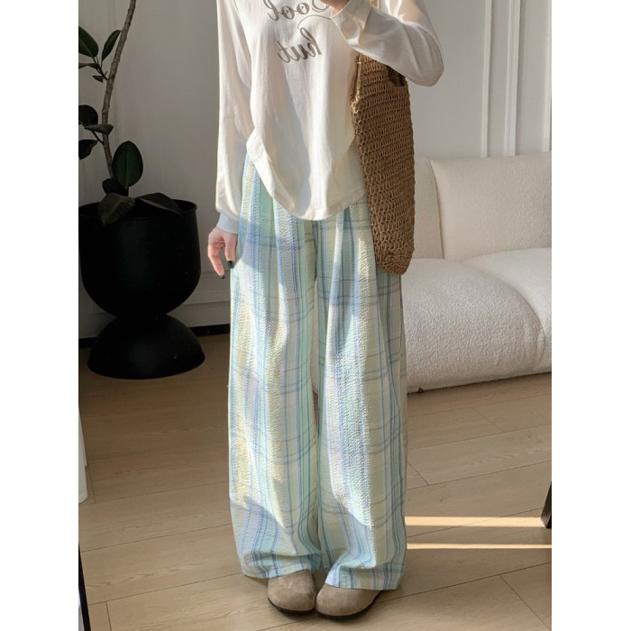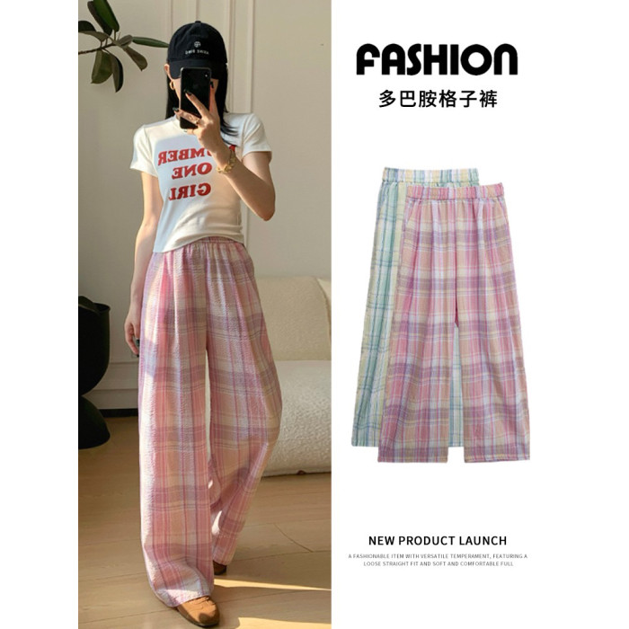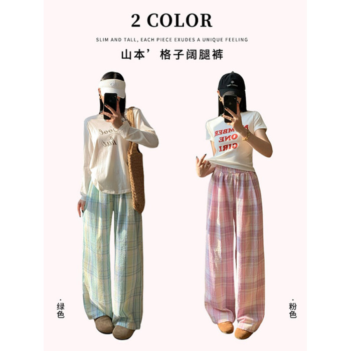 多巴胺格子山本濶腿褲女夏季薄款寬松高腰休閒垂感顯瘦直筒拖地褲