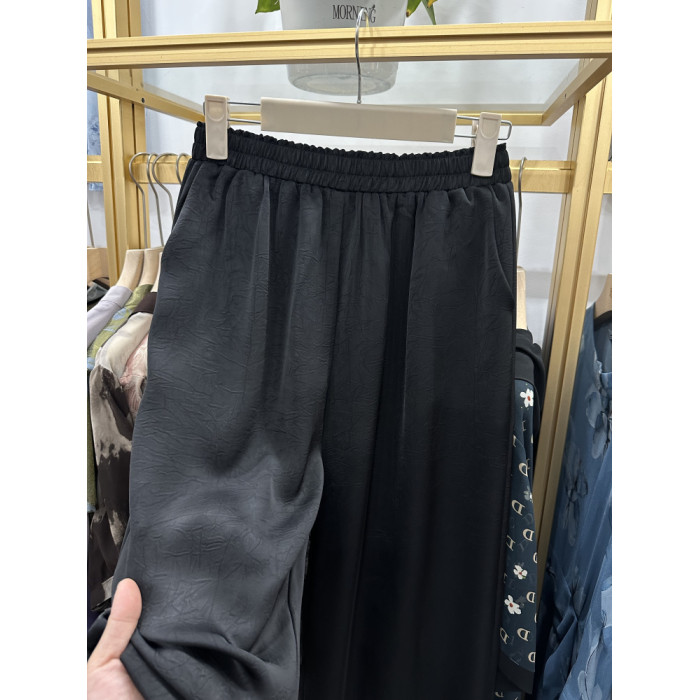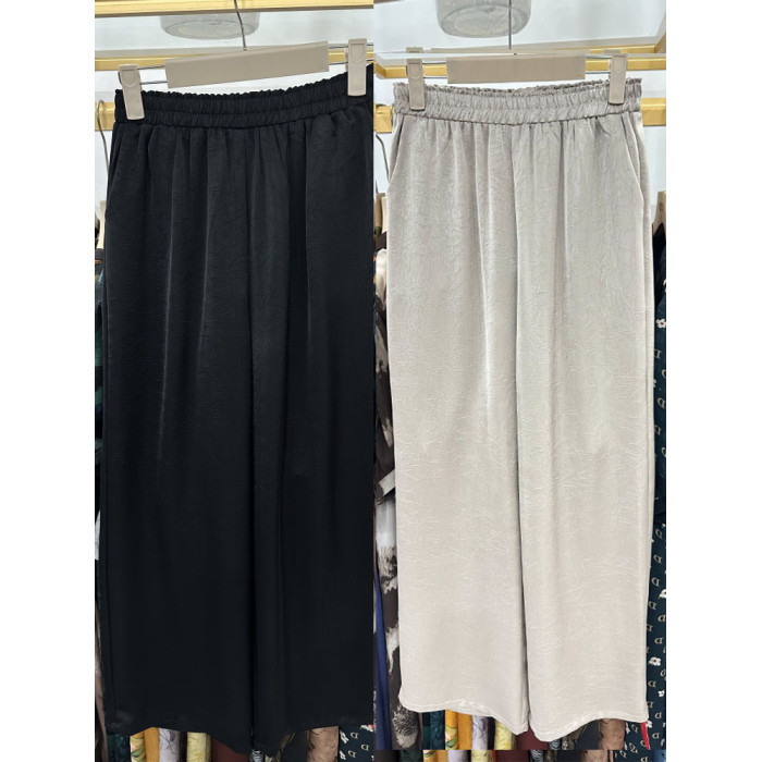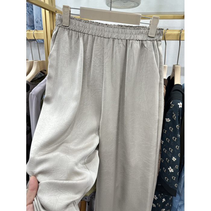 媽媽夏天褲子真絲休閒褲若棋中老年女裝夏裝桑蠶絲長褲奶奶濶腿褲