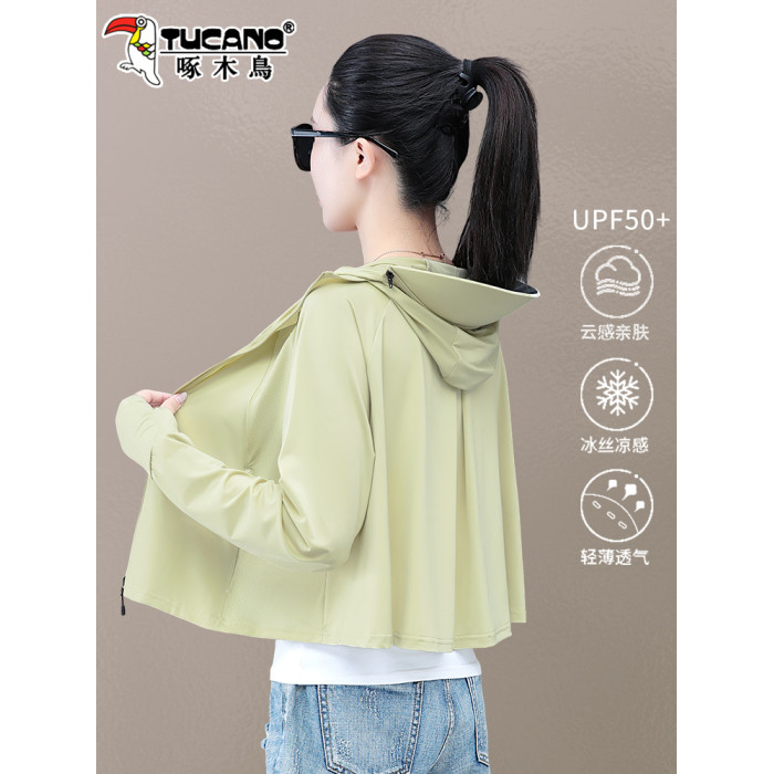 啄木鳥女士鬭篷式防曬衣女款2025新款防紫外線冰絲涼感防曬服短款