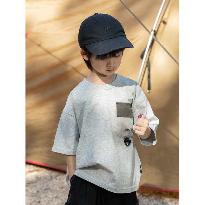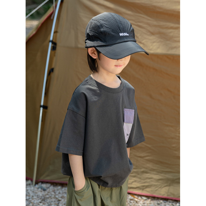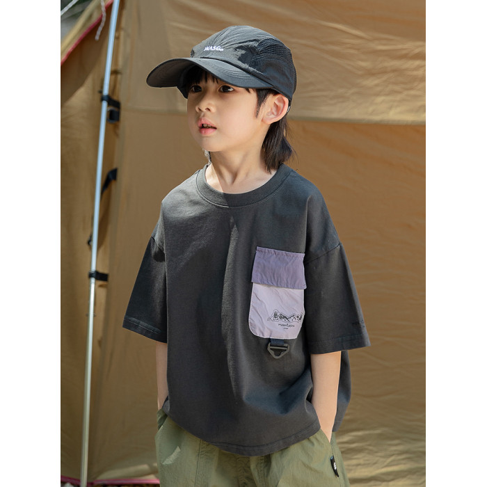 米修叻 男童山系撞色印花短袖T恤純棉兒童透氣吸汗ins風戶外短袖