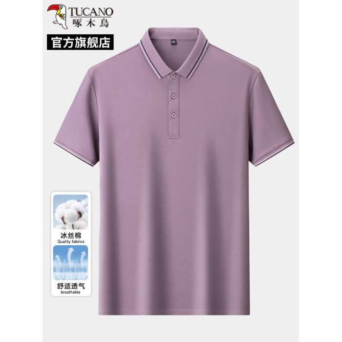 啄木鳥2025夏季新款中年男士polo衫絲光棉翻領薄款爸爸裝短袖t恤C