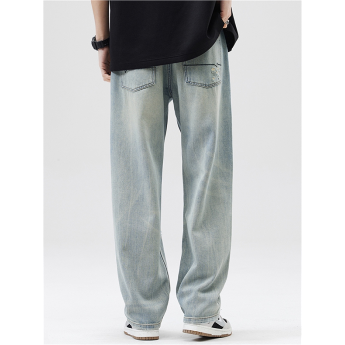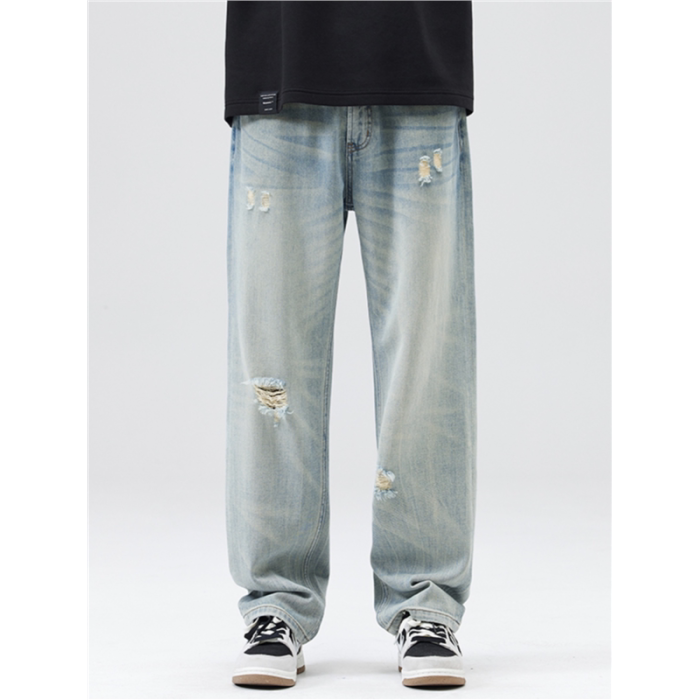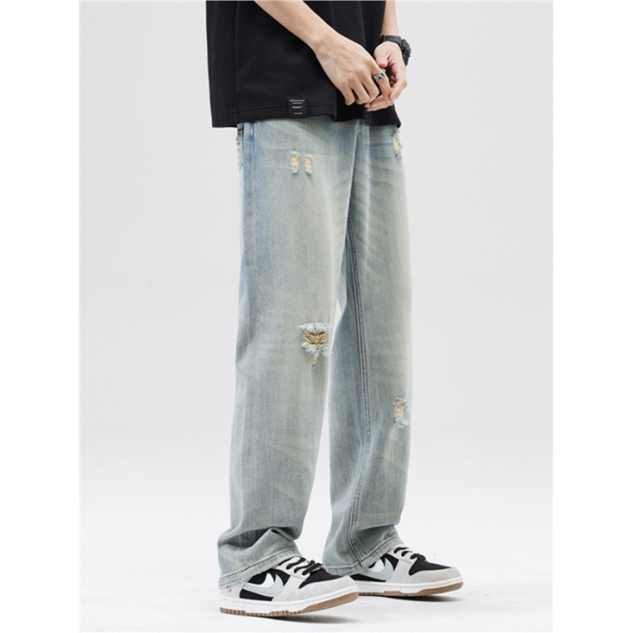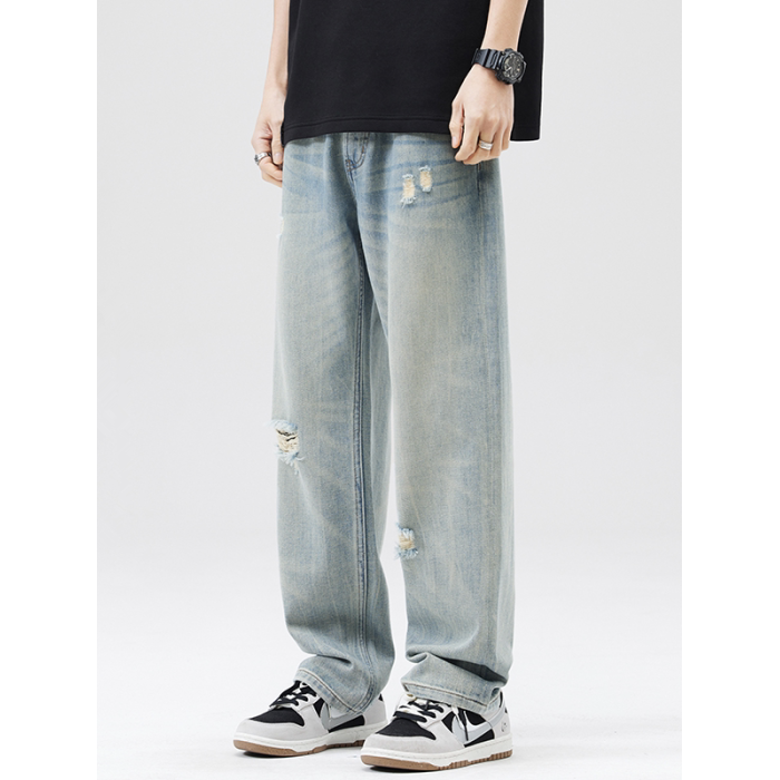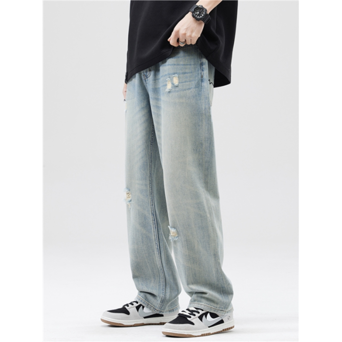 破洞淺色牛仔褲男2025夏季薄款新款潮牌寬松直筒濶腿休閒長褲子