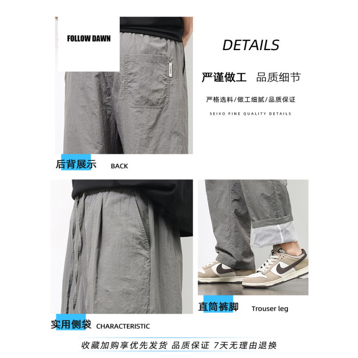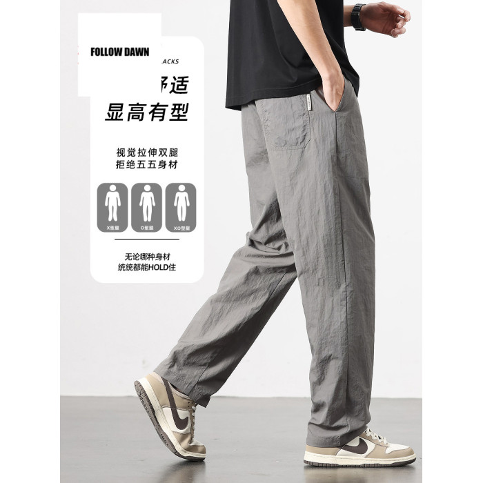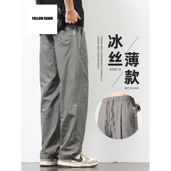 2025新款夏季薄款冰絲休閒褲男士潮牌寬松直筒運動速乾濶腿長褲子