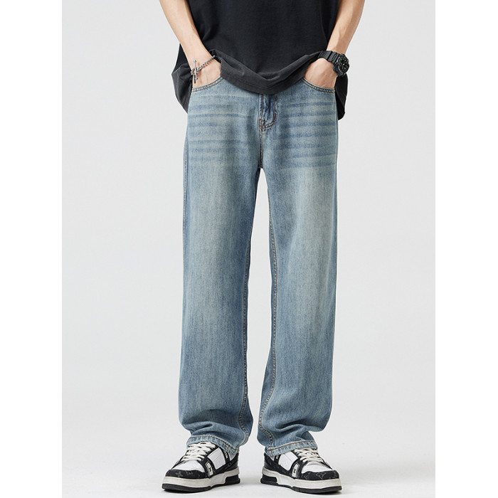淺色天絲直筒牛仔褲男士2025夏季薄款寬松休閒男生褲子2025新款