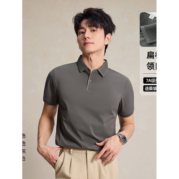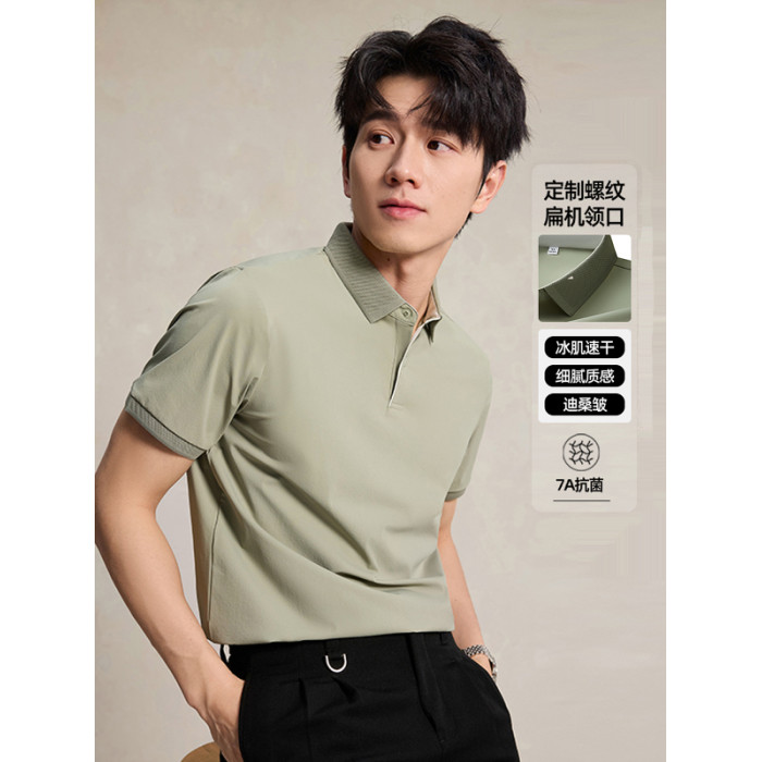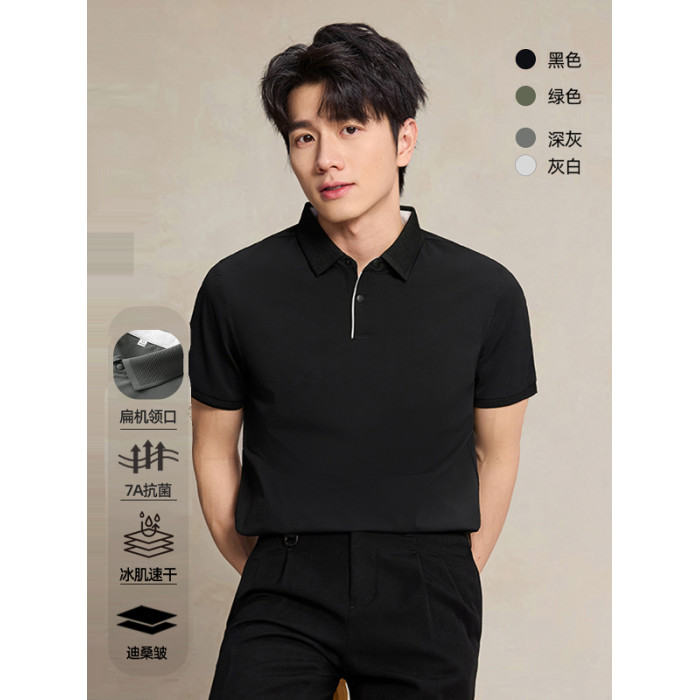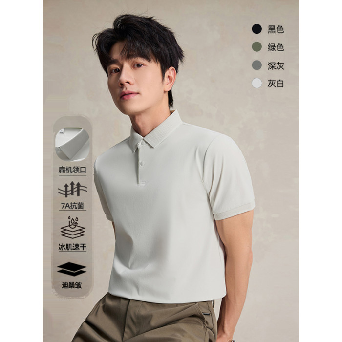 冰肌速乾迪桑皺面料7A抗菌功能新款短袖POLO衫T恤夏季翻領彈力男