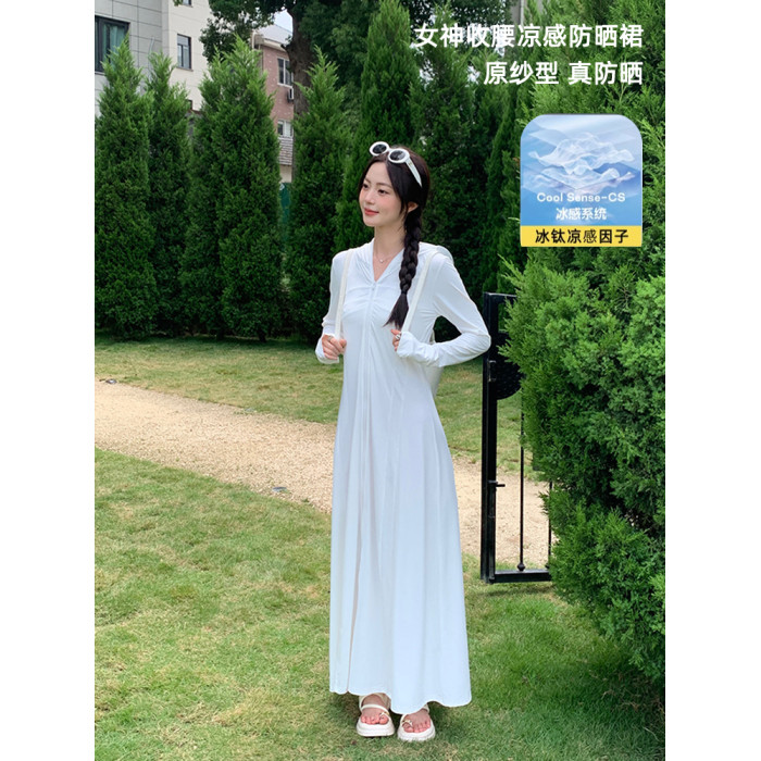茉尋藝防曬衣長款女2025夏薄款防紫外線修身連帽冰絲防曬服防曬裙