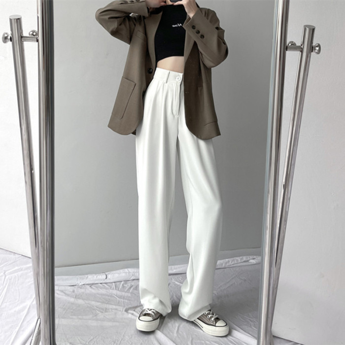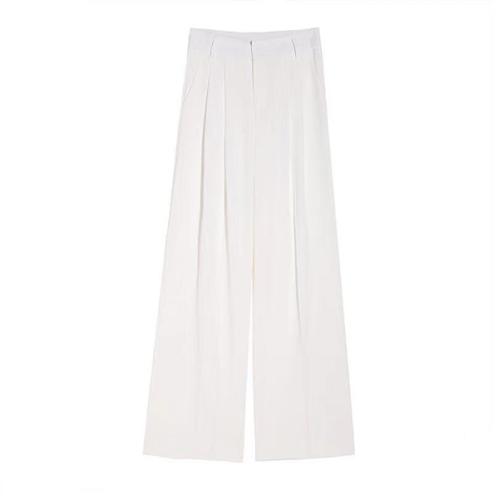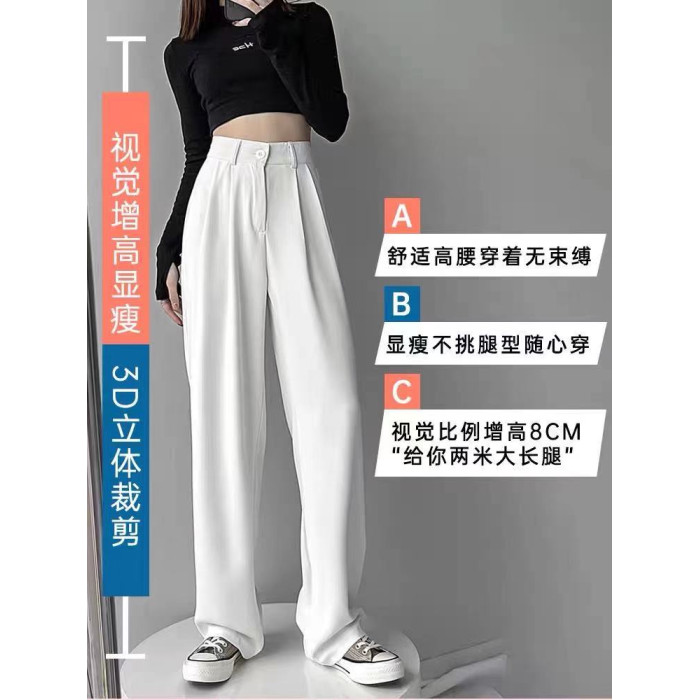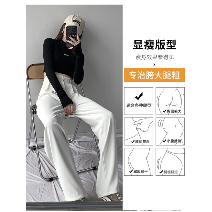 白色垂感西裝褲女夏季高級寬松高腰雪紡濶腿褲休閒直筒顯瘦拖地褲