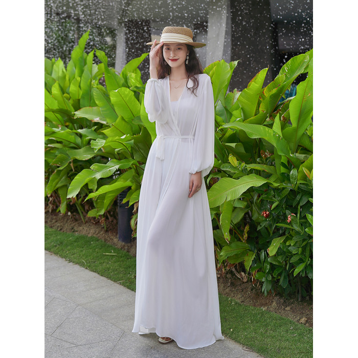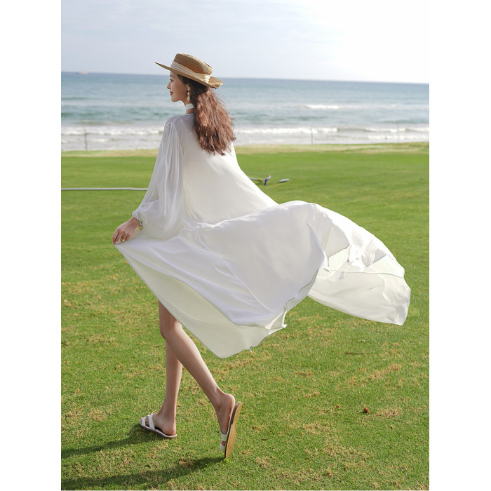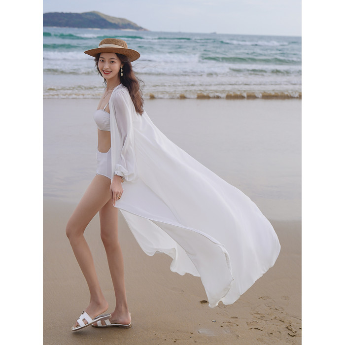海邊度假沙灘比基尼外套罩衫大碼超長款防曬衣夏季女泳衣外搭披肩