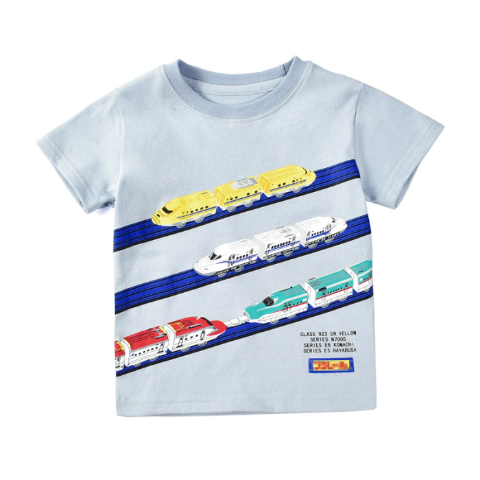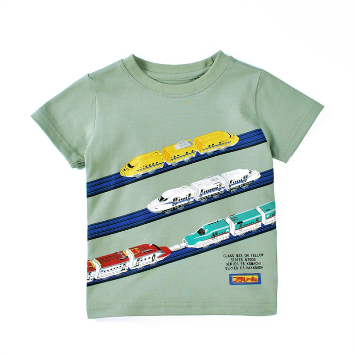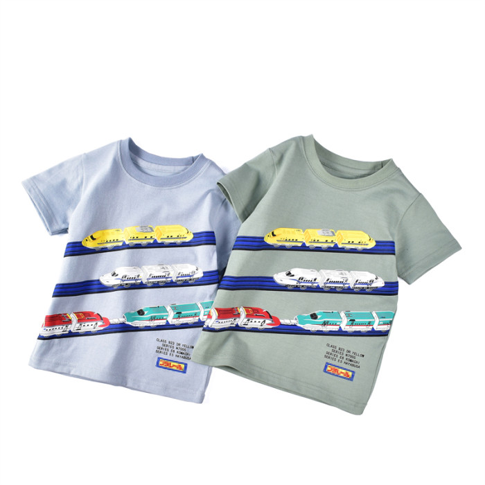 日系兒童t恤短袖男童夏卡通機車純棉T恤衫1-8嵗小童圓領半袖打底