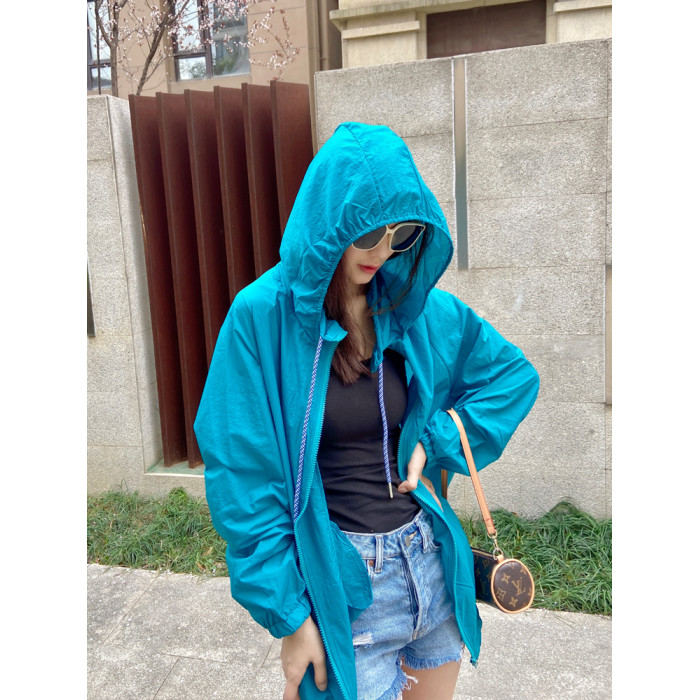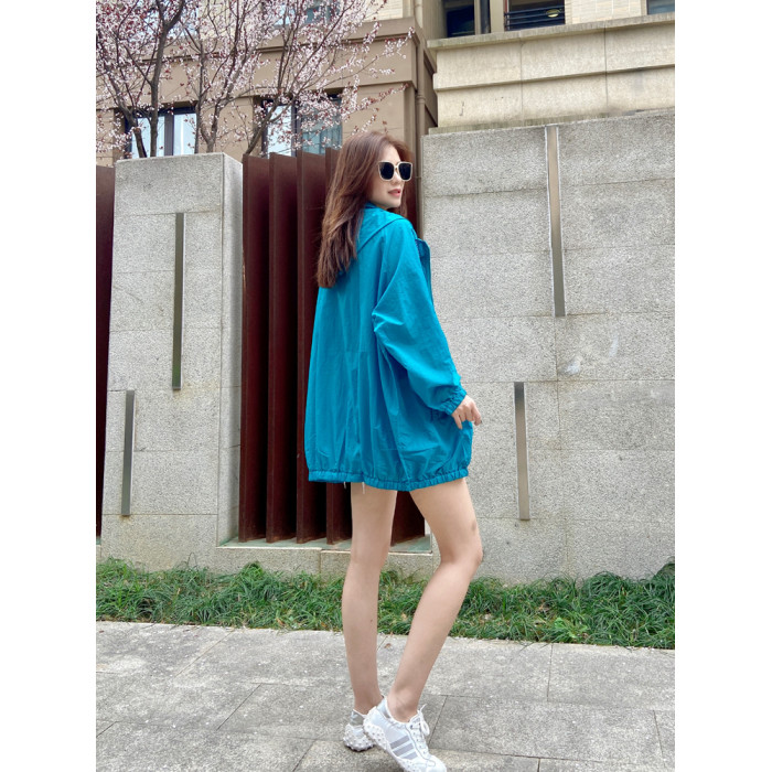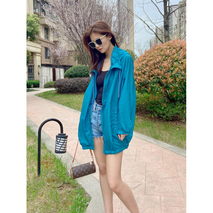 湖藍色大碼防曬衣女夏季2025年新款薄款短外套寬松顯瘦透氣防曬服