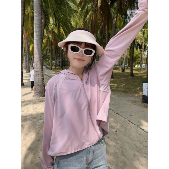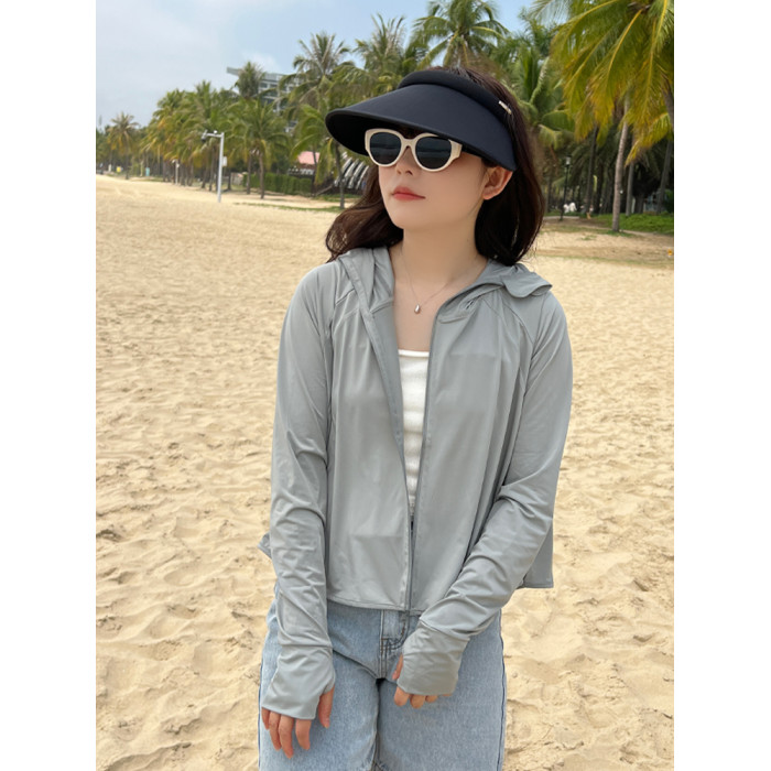 2023年新款黑膠帽簷披肩涼感防曬衣女夏防紫外線遮陽透氣防曬服